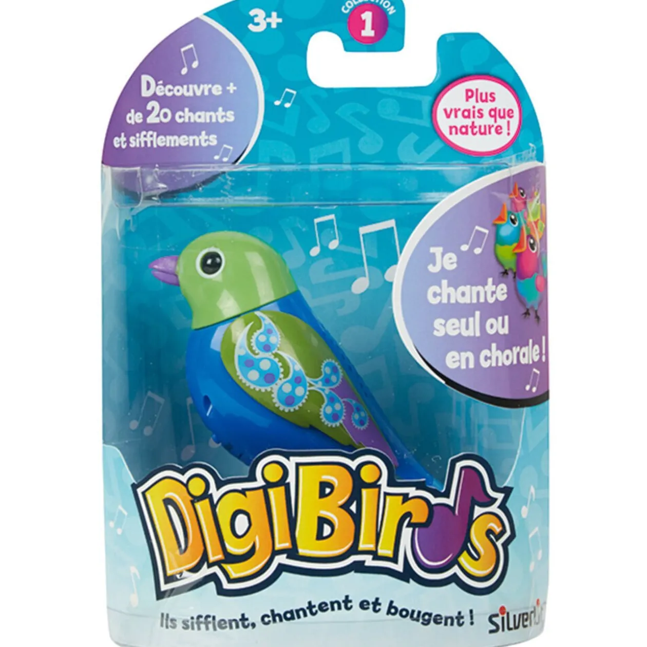 Oiseau interactif Digibirds qui siffle, chante et bouge. Souffle sur ton Digibirds pour qu’il gazouille. Siffle pour qu’il chante. Plus de 20 chants et sifflements. 10 modèles à collectionner.Grand Prix du Jouet 2014. Dès 3 ans.