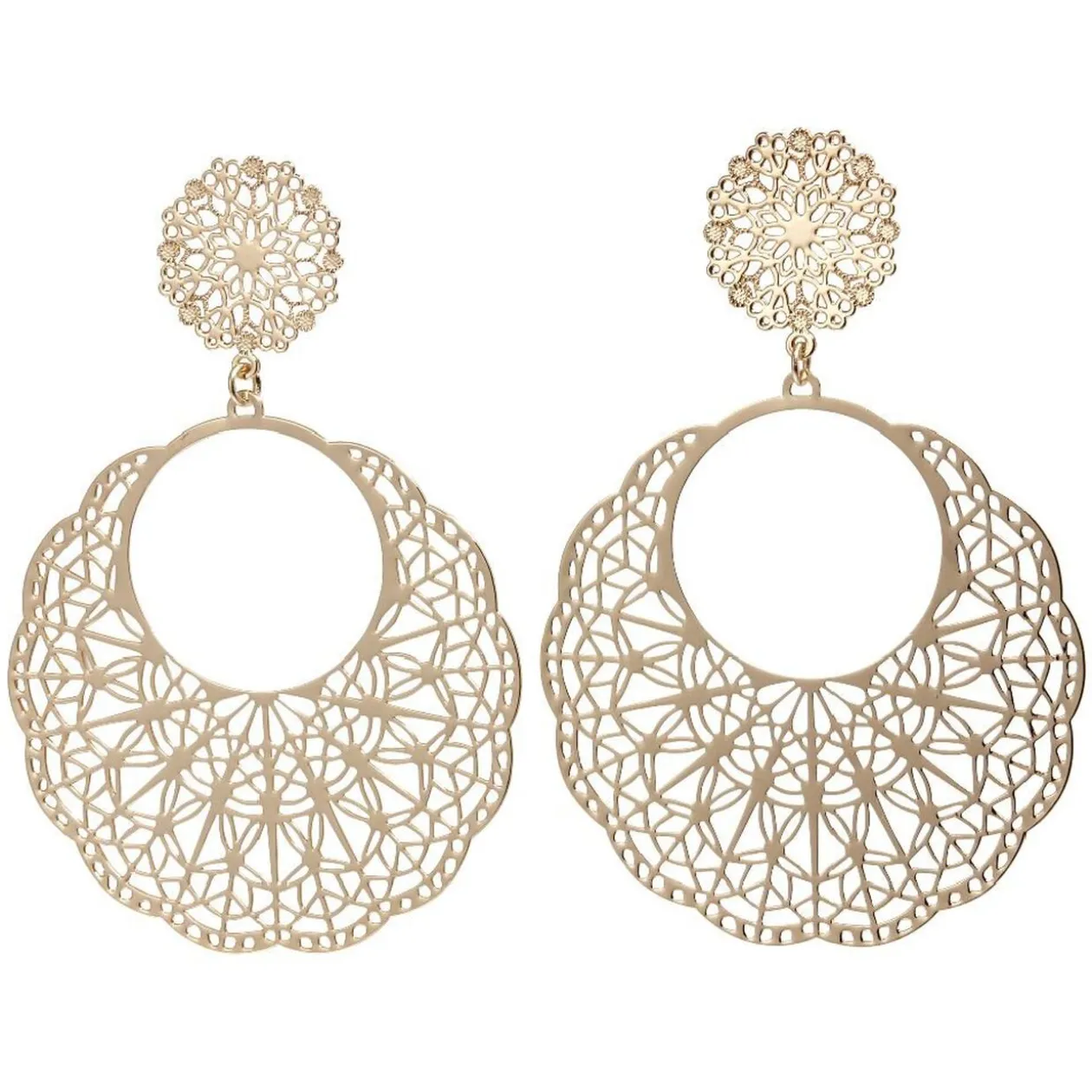 Paire de boucles d’oreilles décor filigrane imitation crochet doré.
