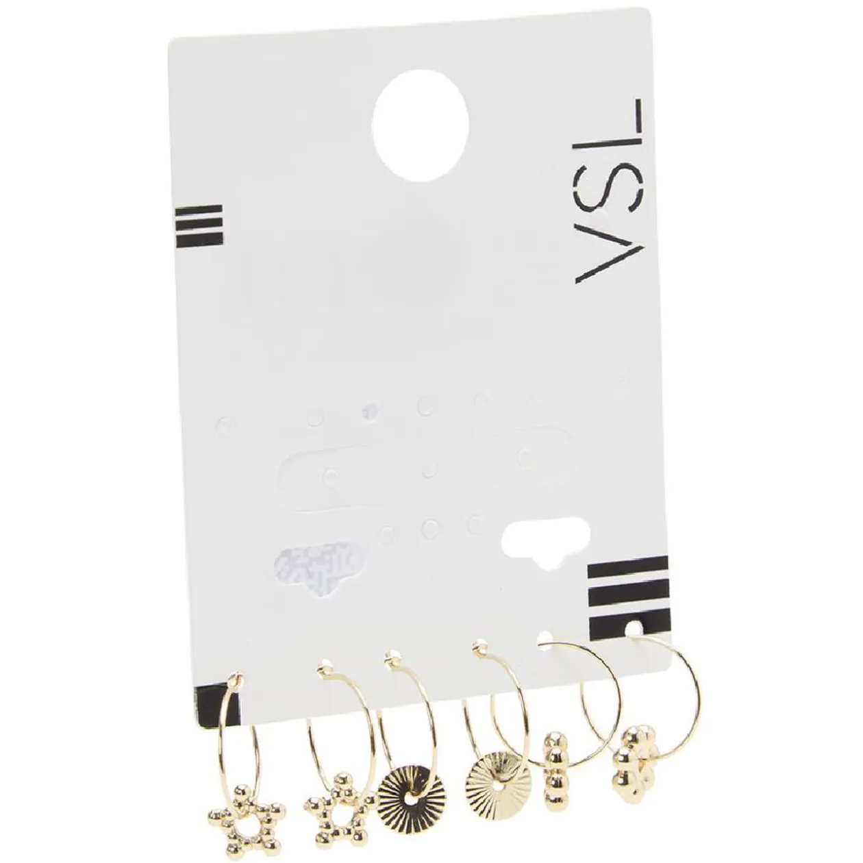 Lot de 3 paires de boucles d’oreilles créoles avec médaillon en métal doré.