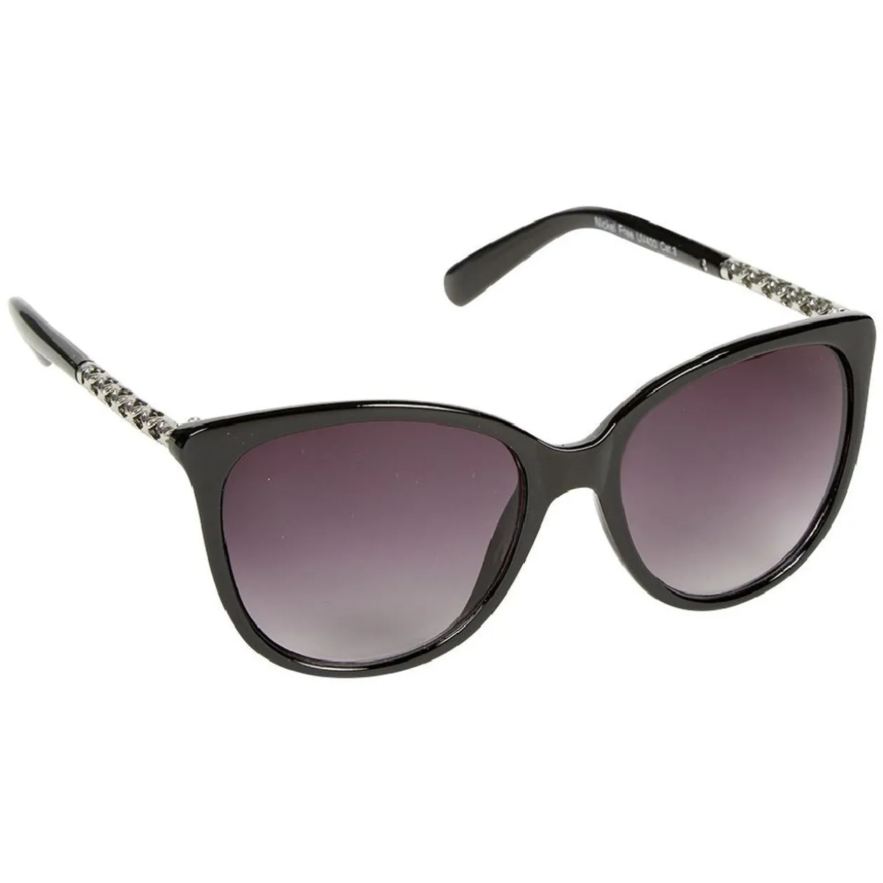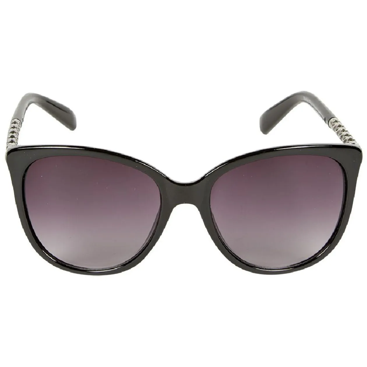 Paire de lunettes de soleil noire avec décor écaille léopard sur les côtés.