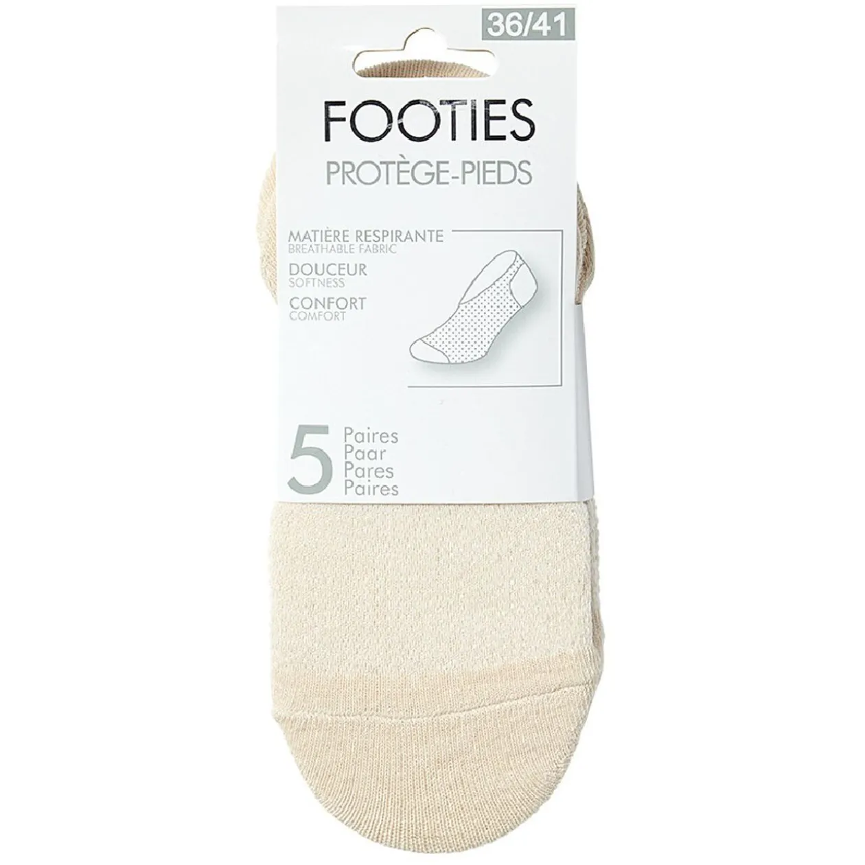 Lot de 5 paires de chaussettes invisibles beiges pour femme