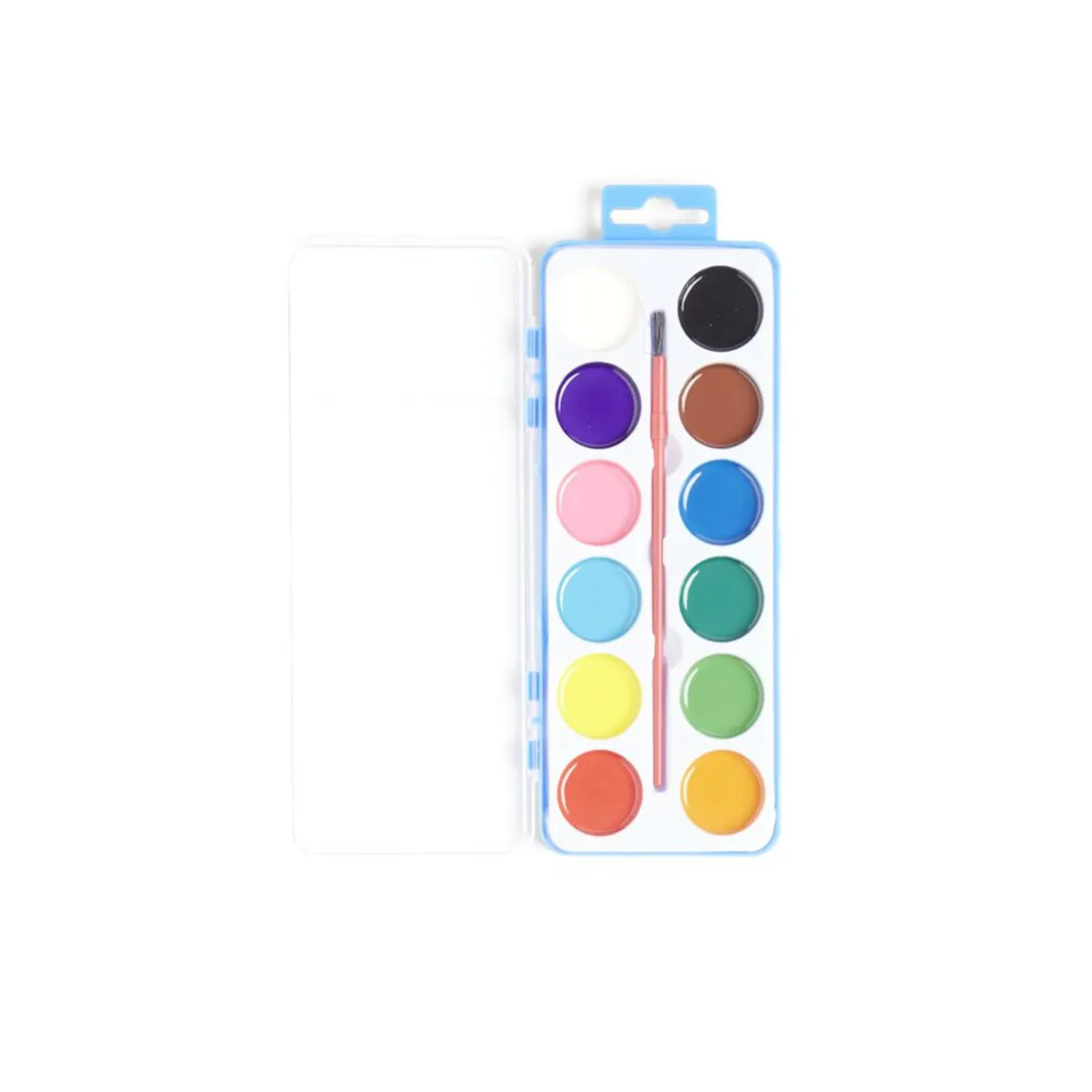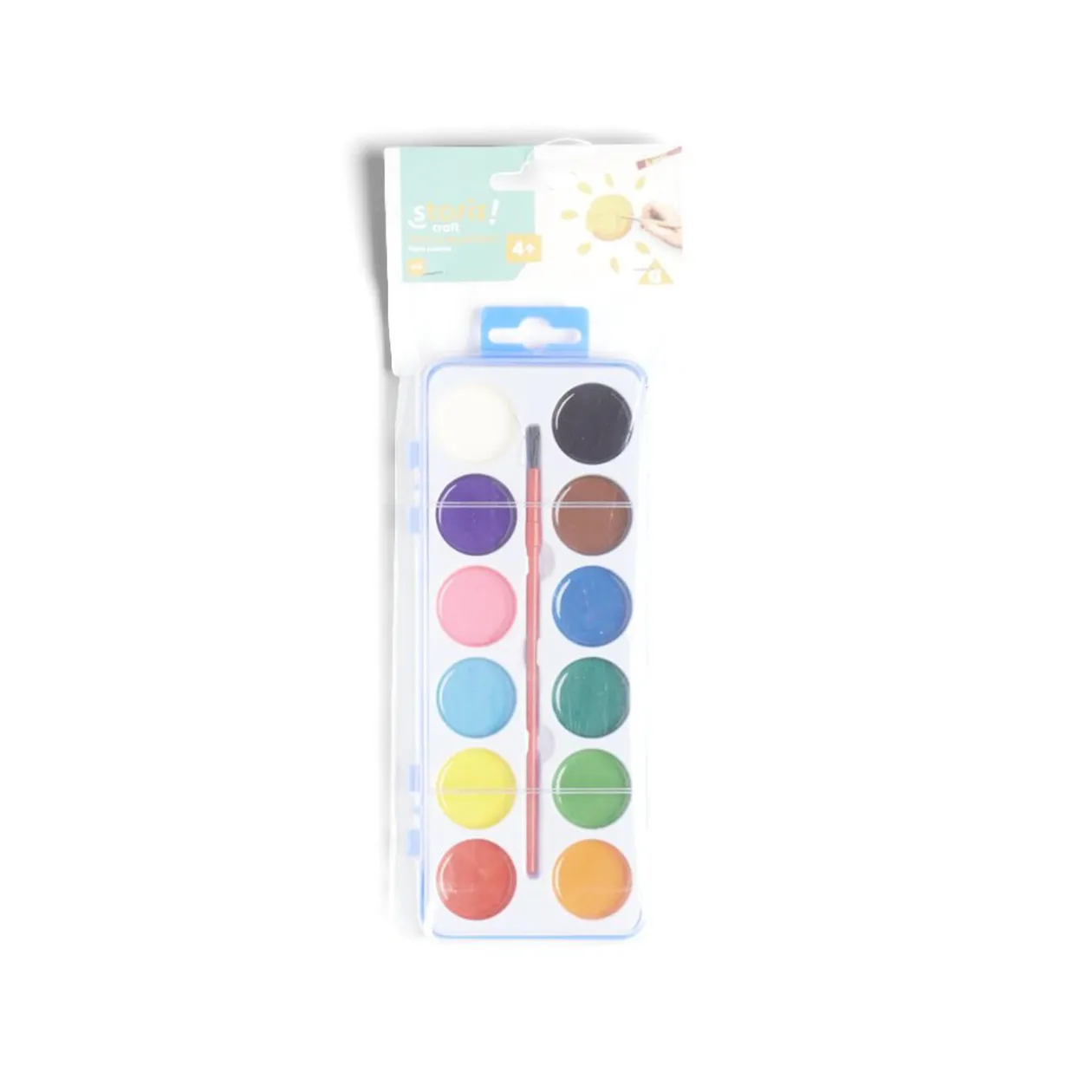 Palette de peinture composée de 12 couleurs et 1 pinceau, idéal pour vos loisirs créatifs.