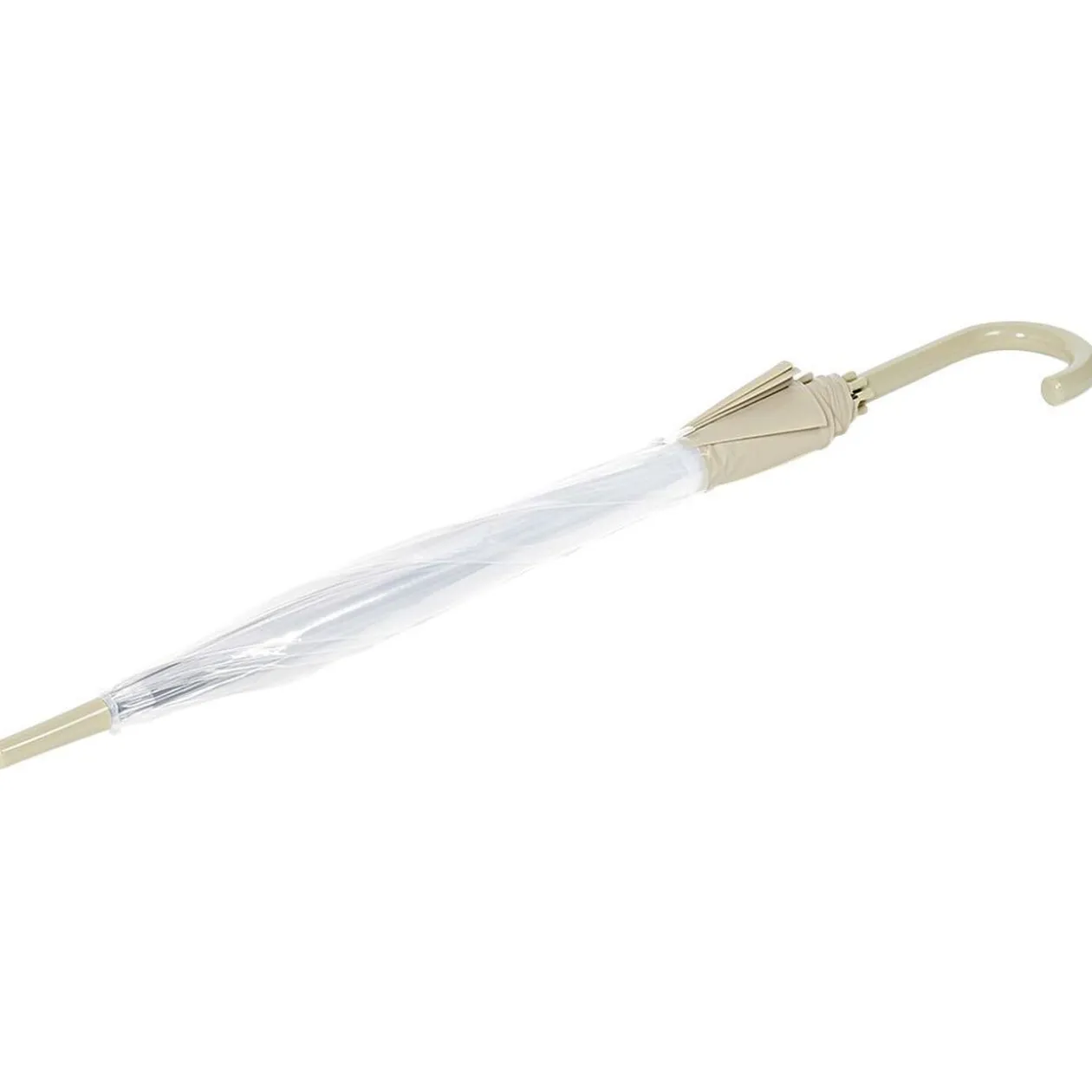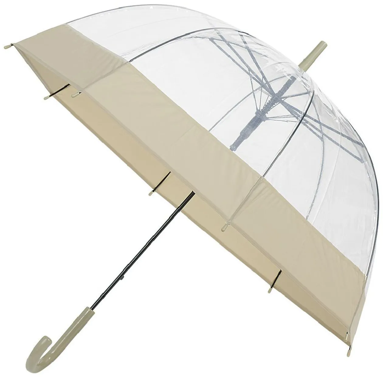 Parapluie canne transparent avec bordure beige