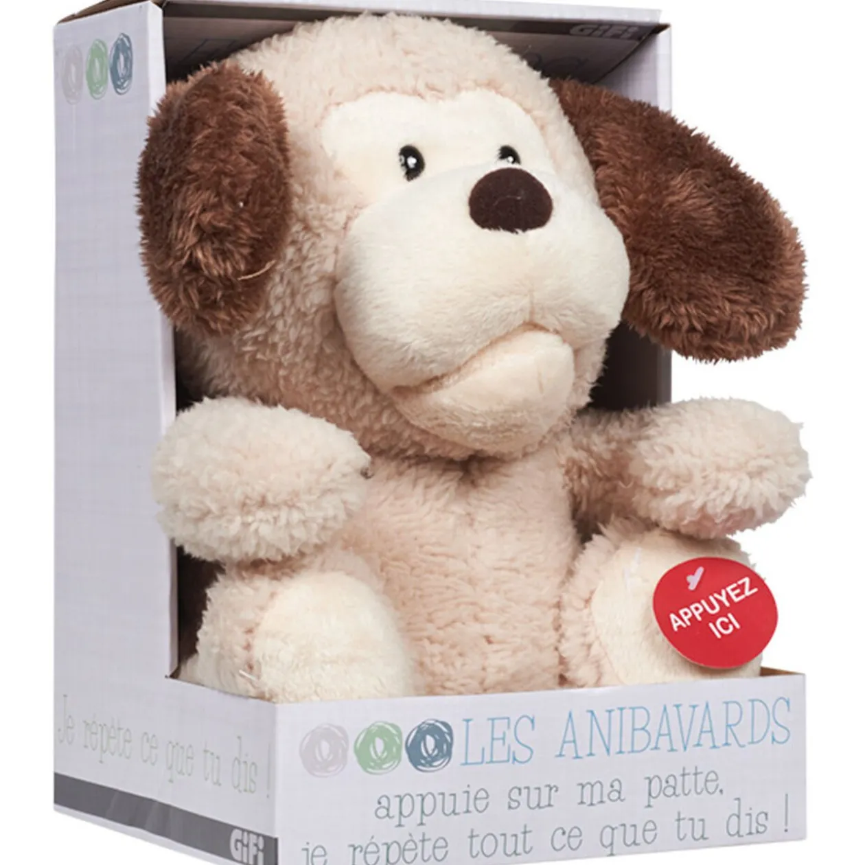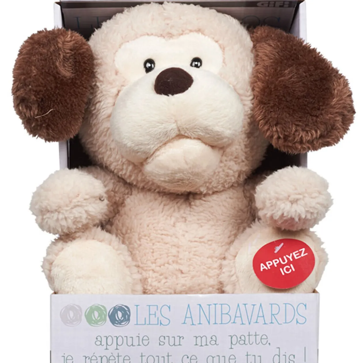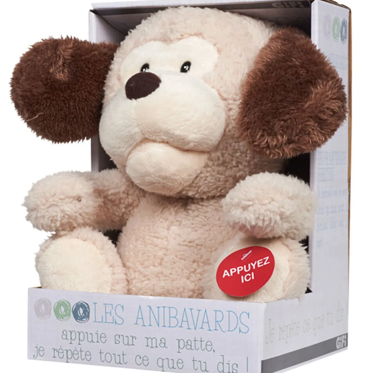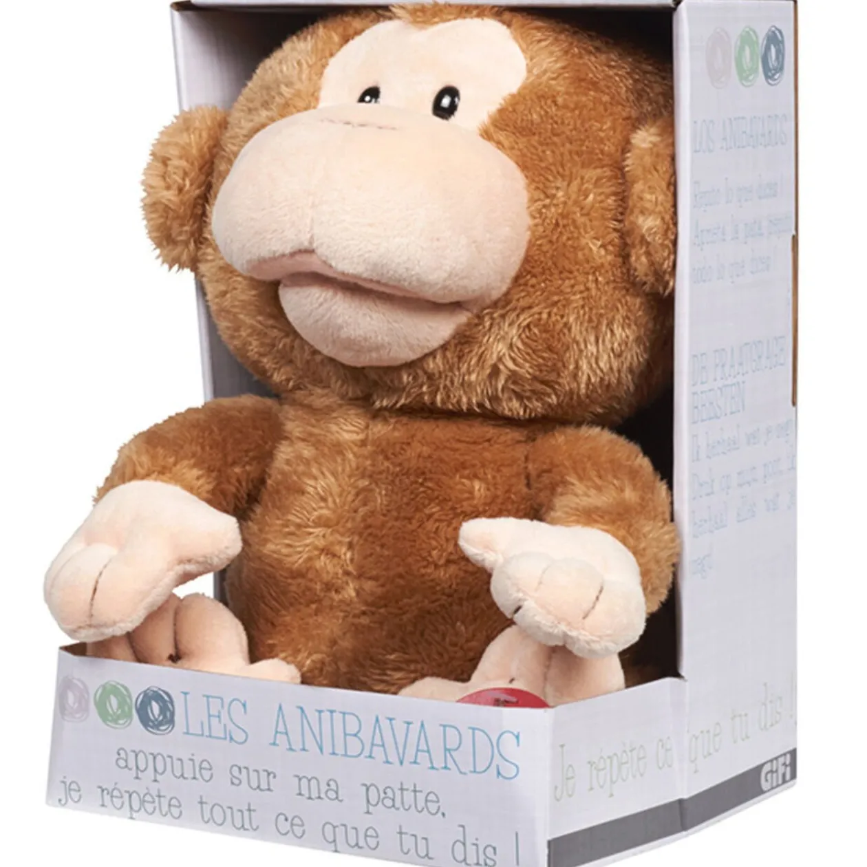 Peluche animée Les Anibavards, H22 cm. Répète tout ce que bébé dit. Fonctionne avec 2 piles LR06 fournies. Dès la naissance.