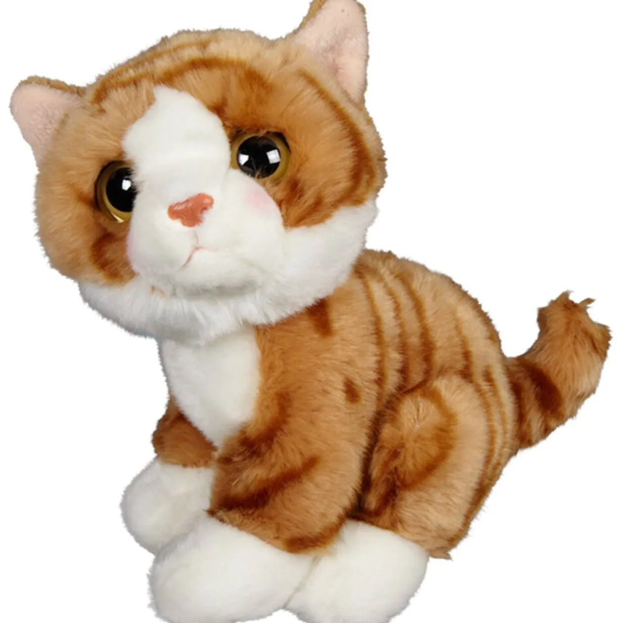 Peluche H 22 cm. Plusieurs modèles d’animaux assis : chat, chien, lion, tigre. Disponibilité selon arrivages. Dès la naissance.