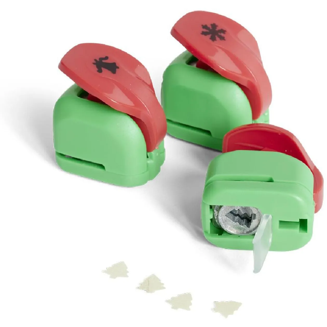 Set de 3 perforatrices avec forme sapin, cloche et flocon de neige, idéal pour laisser libre cours à toutes vos envies créatives.