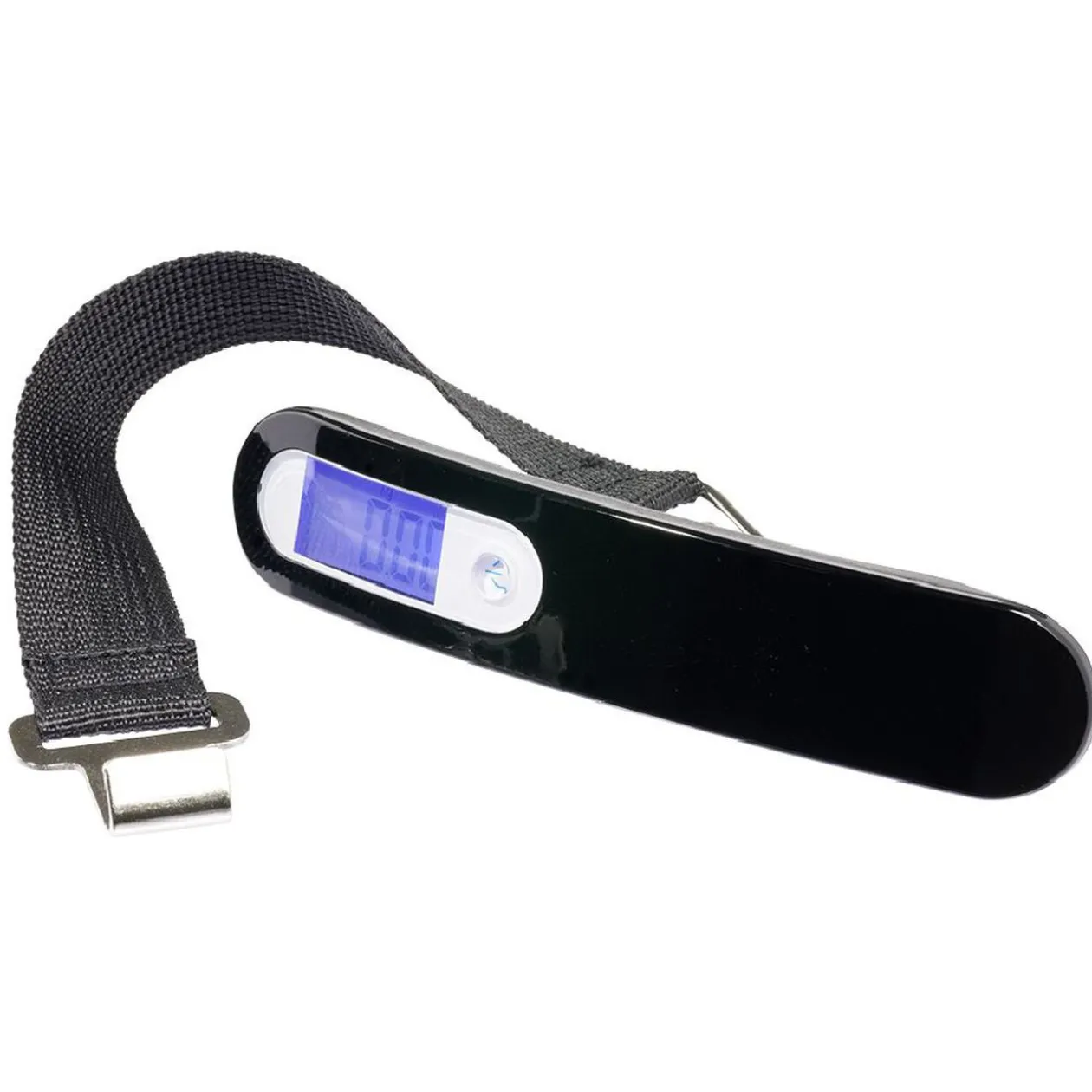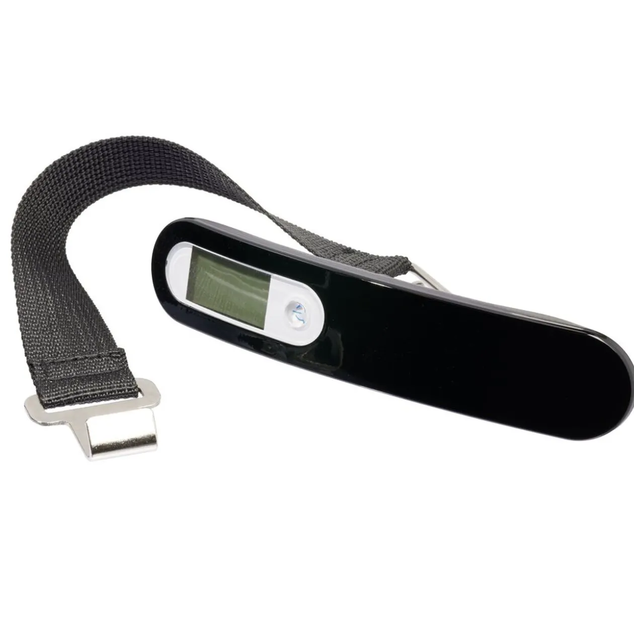 Contrôlez le poids de vos valises grâce à ce pèse-bagage noir.