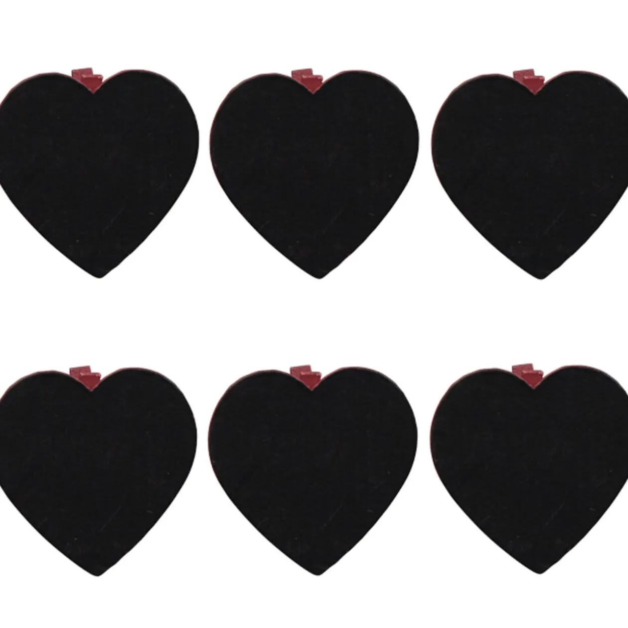 6 coeurs ardoise, L. 3 cm, pince couleur rouge bordeaux. Peut s’utiliser en décoration de table ou marque-place pour mariage ou autre évènement.