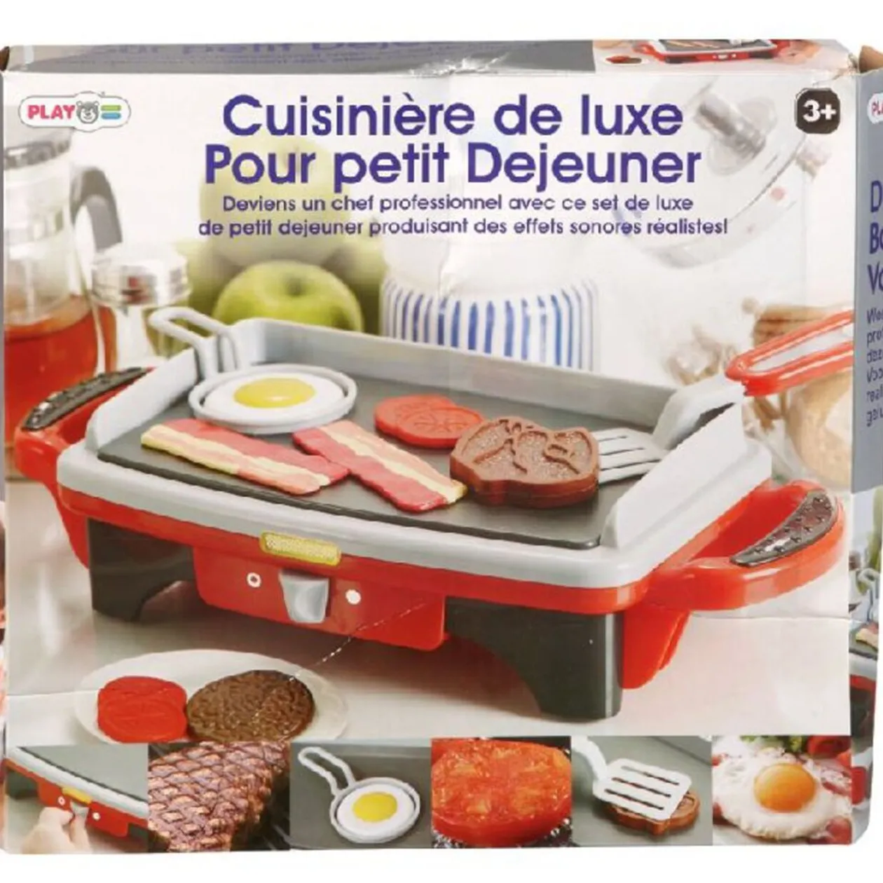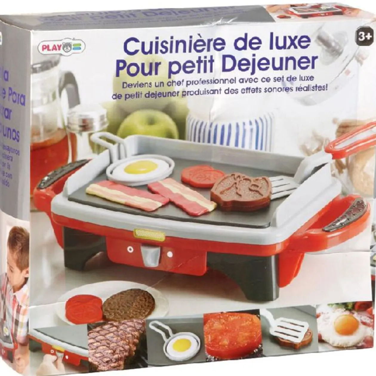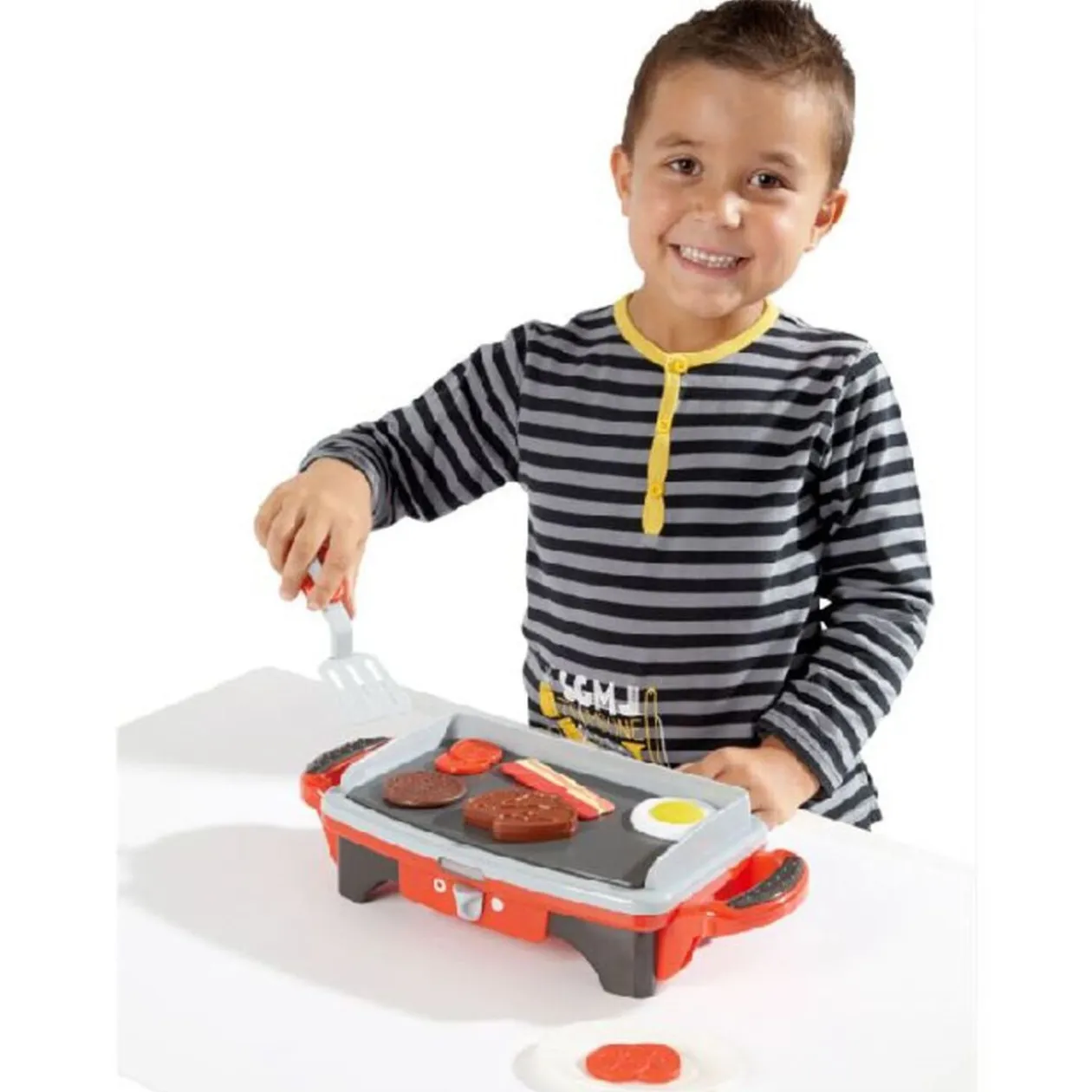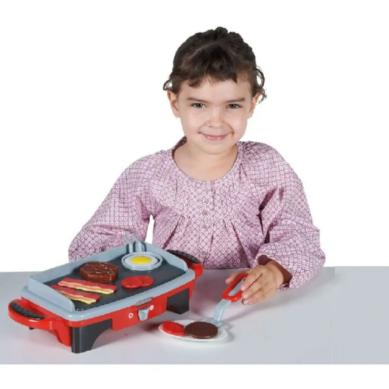 Plancha dim. 34,5×14,5×8,5 cm, sonore, lumineux, divers accessoires, fonctionne avec 2 piles LR06 non fournies, dès 3 ans..