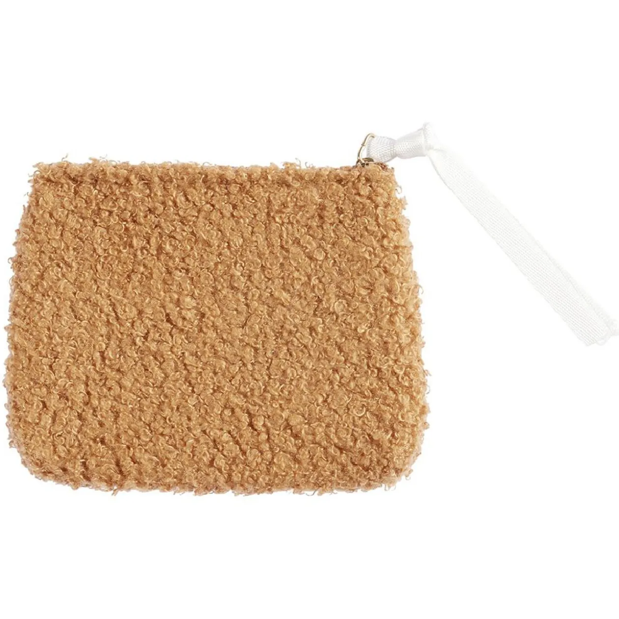 Pochette marron imitation laine avec fermeture à glissière. Idéale pour accessoiriser une tenue avec élégance et naturel.