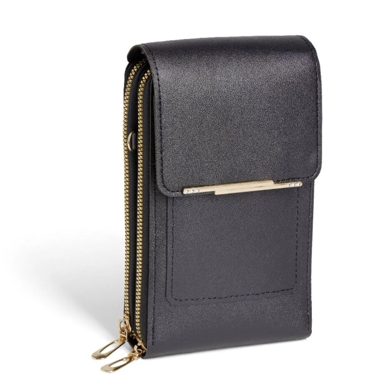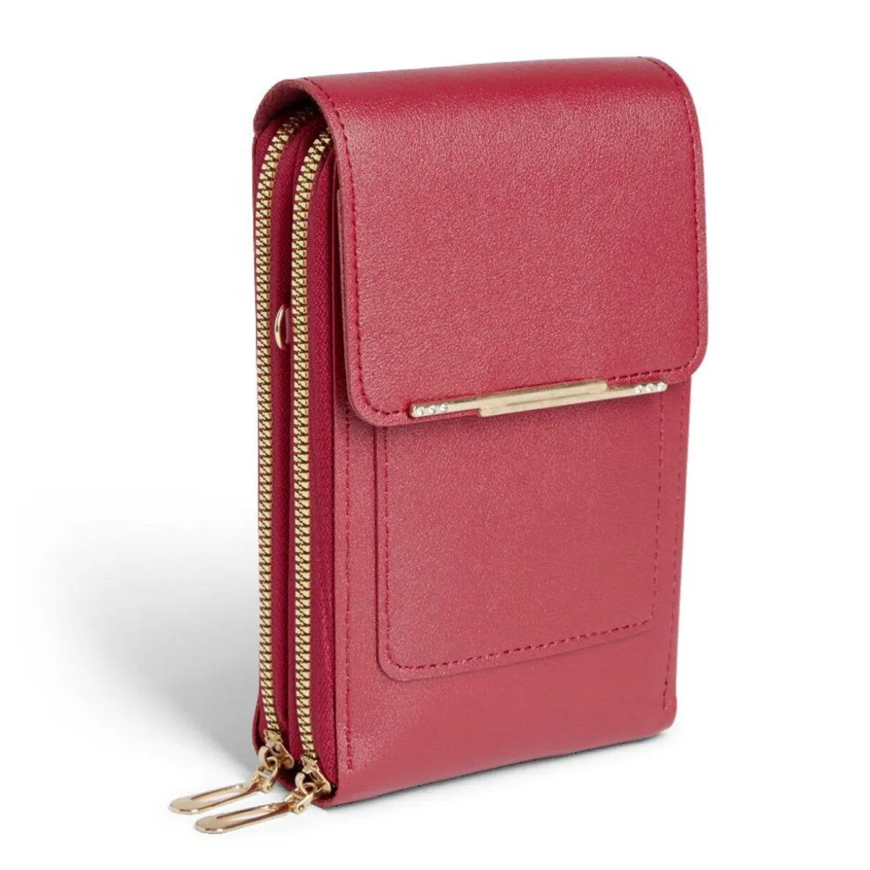 Cette pochette en polyuréthane, dotée d’une fermeture éclair métallique, offre une protection au quotidien pour votre téléphone.