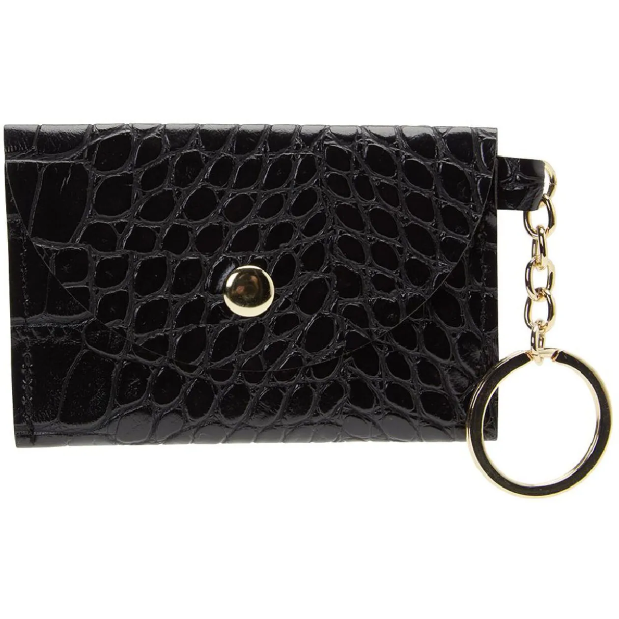 Porte-clé avec petite pochette noire fermée par un bouton-pression.
