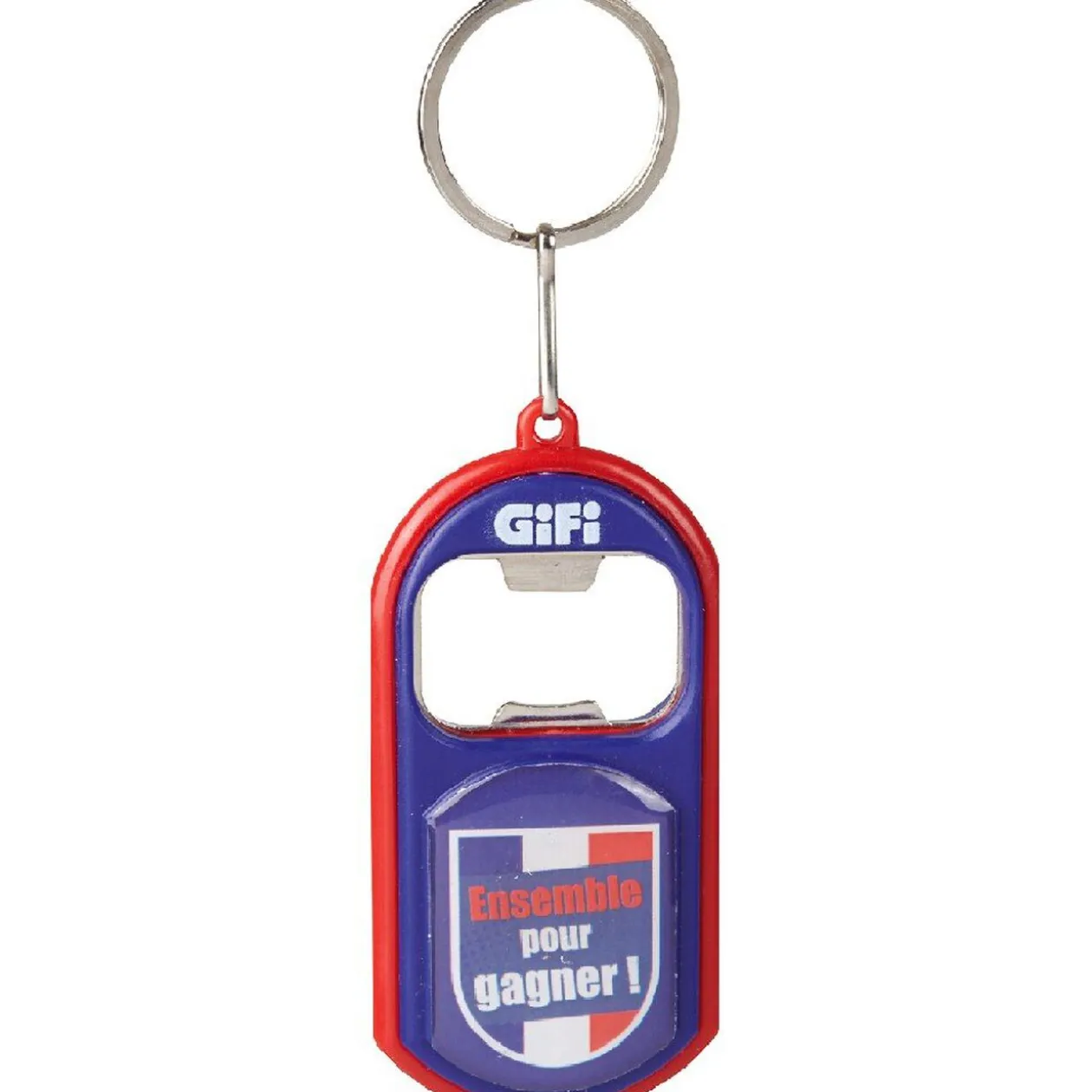 Porte clés décapsuleur LED aux couleurs de l’équipe de France.