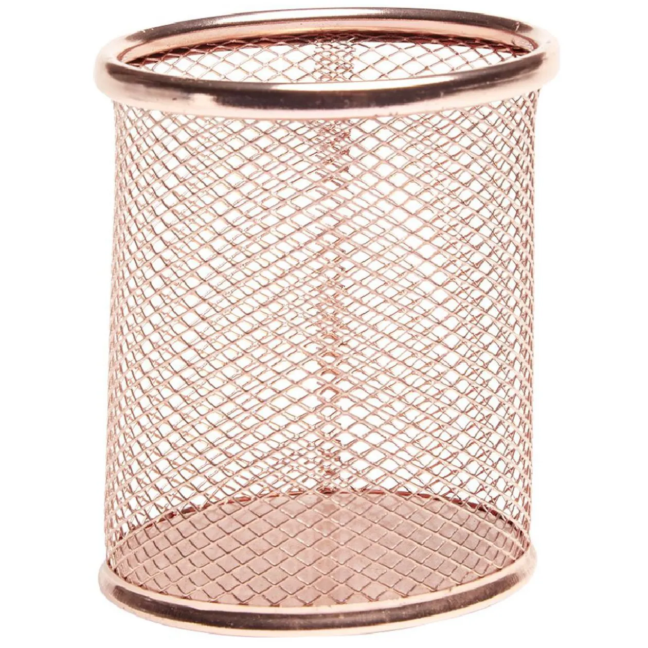 Pot à crayons en métal grillagé rose doré.