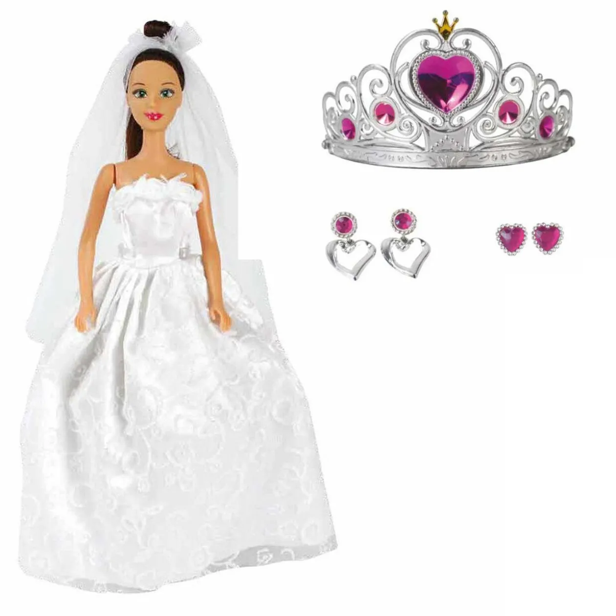 Poupée avec voile de mariée et sa robe, avec ses accessoires de beauté :