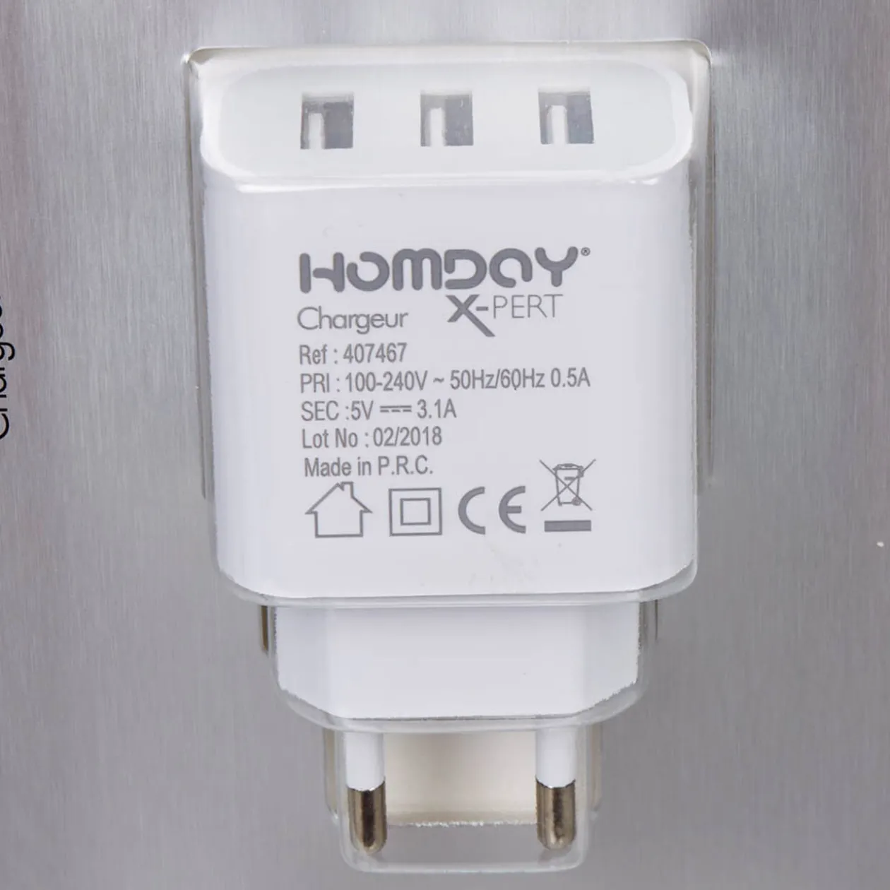 Compact et pratique, cette prise murale blanche permet de charger 3 appareils en même temps grâce à ses 3 ports USB.
