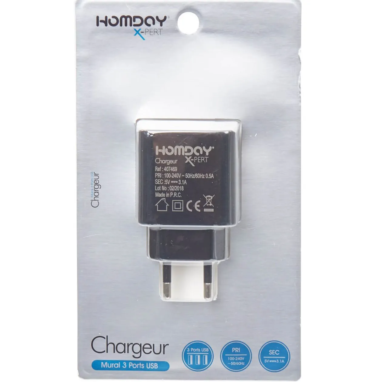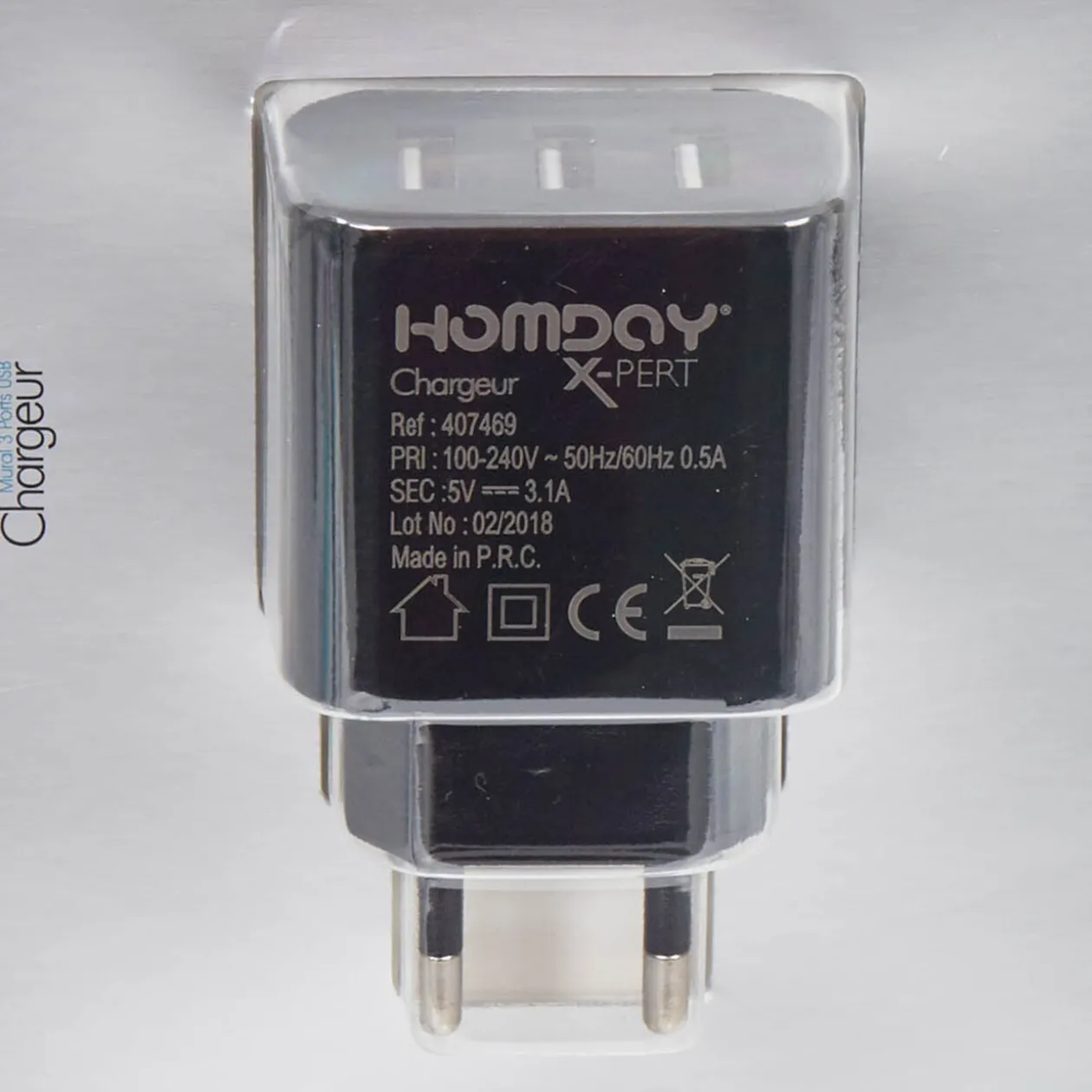 Compact et ultra pratique, cette prise murale permet de charger 3 appareils en même temps grâce à ses 3 ports USB.