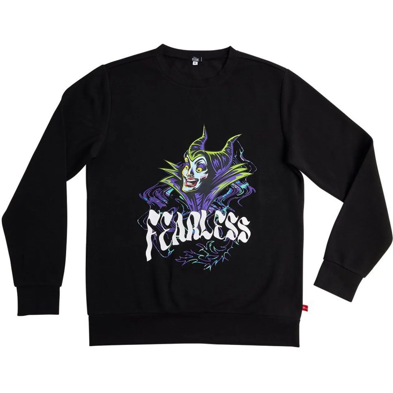 Les fans de Villains Disney vont tout de suite adopter ce pull noir avec imprimé violet de Maléfique agrémenté de l’inscription « Fearless » en vert se traduisant par « Intrépide ».