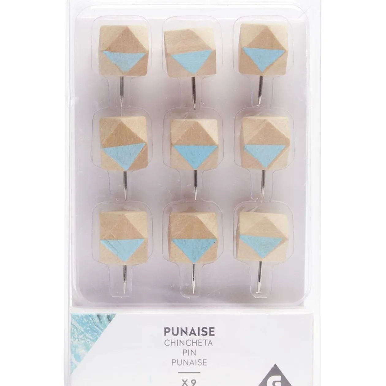 Lot de 9 punaises en bois.