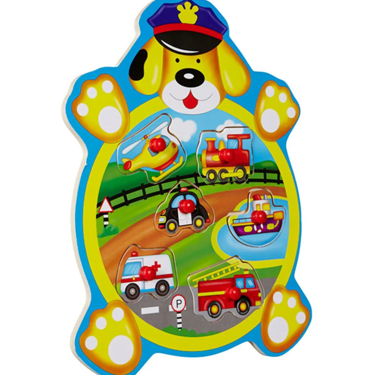 Puzzle à encastrement en bois, 6 pièces. Dès 1 an. 4 modèles disponibles selon arrivages :