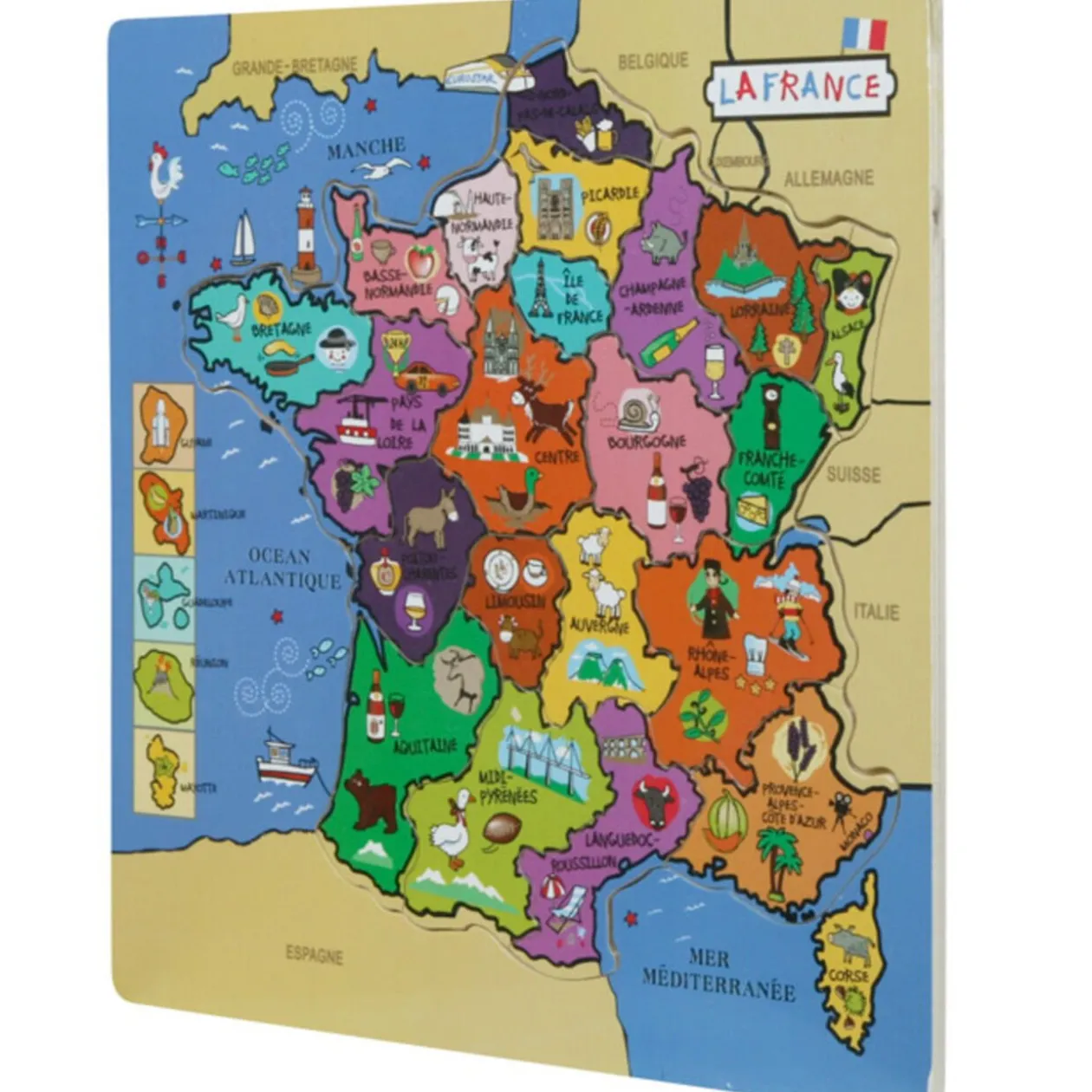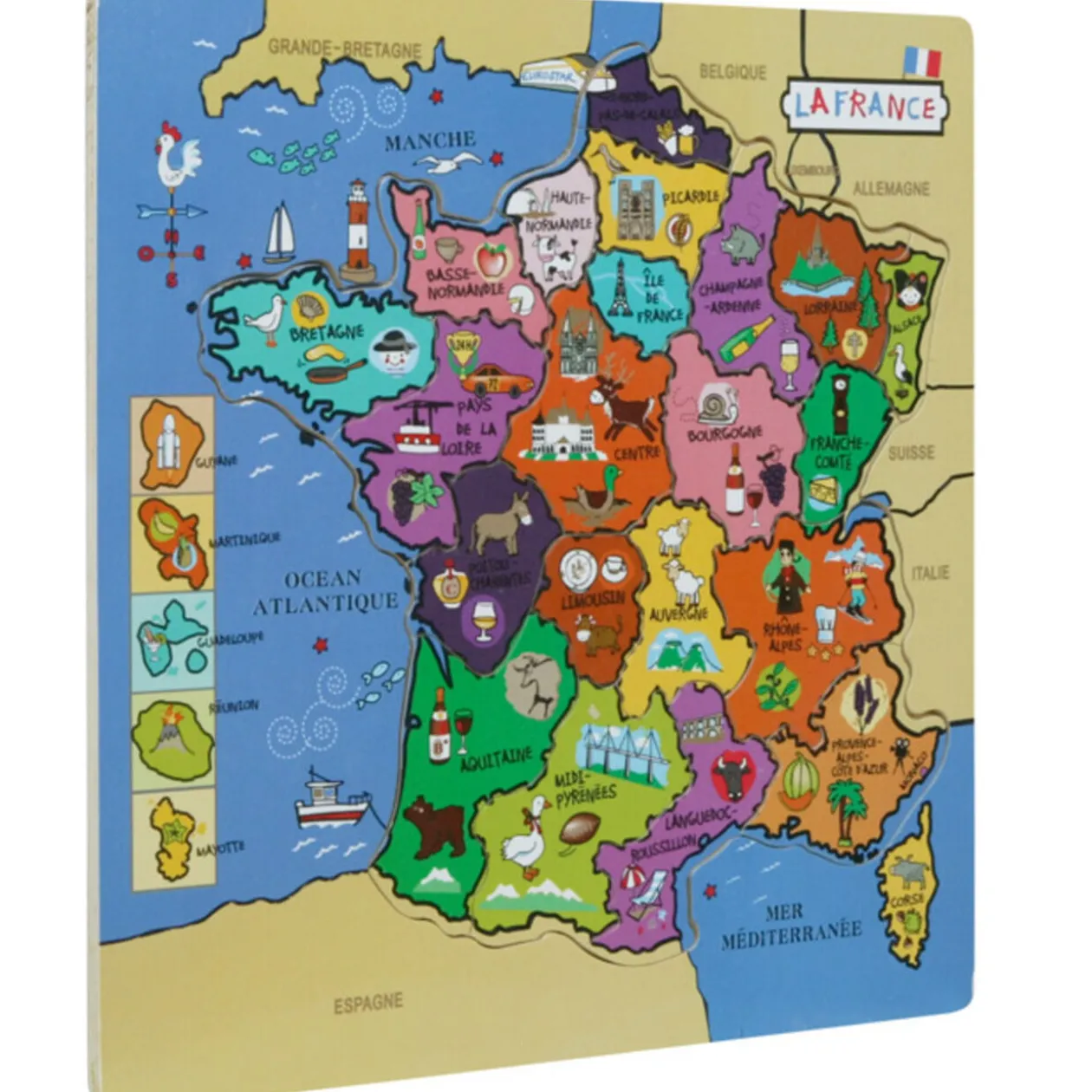 Puzzle carte de France 21 pièces, bois. Dès 5 ans.