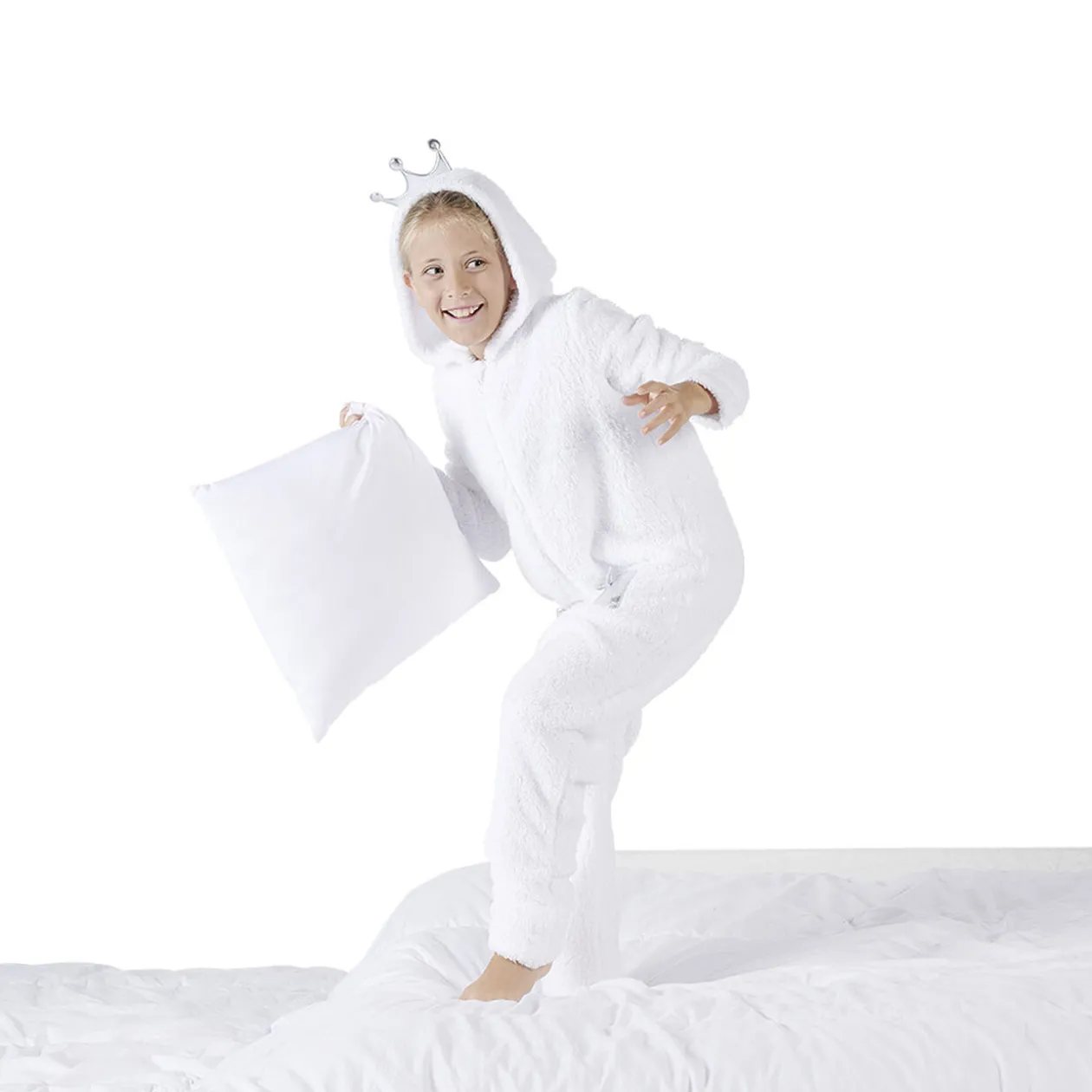 Combinaison Princesse blanche et argentée avec ailes et couronnes intégrées.