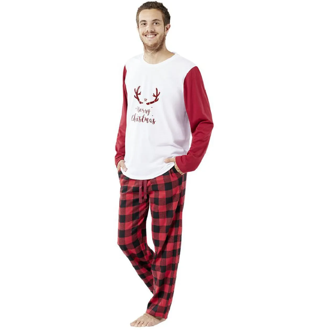 Réunissez tous les membres de votre tribu autour de l’ambiance de noël en portant des pyjamas identiques pour toutela famille. Ce modèle est également disponible en version femme (599360) et enfant (599370) selon stock magasin.