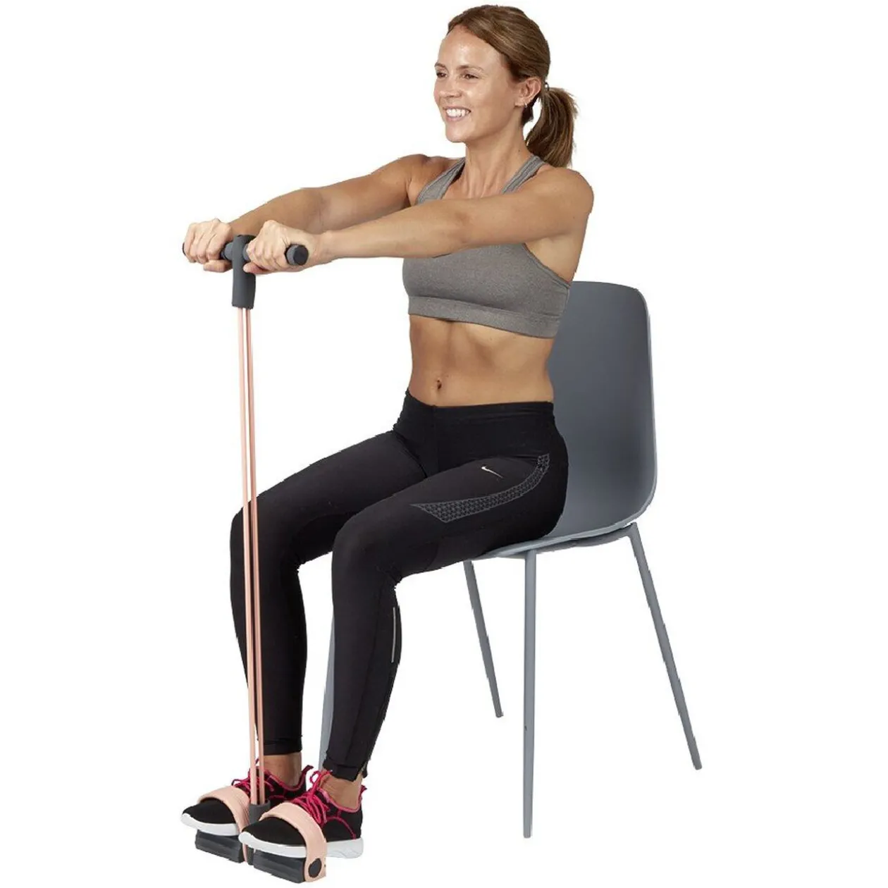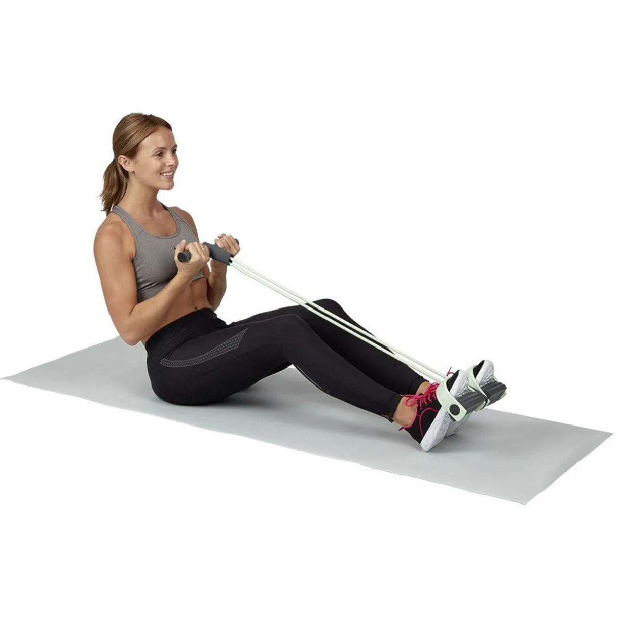 Ce rameur avec élastique est idéal pour vous entraîner à la maison et ainsi muscler et tonifier votre corps.