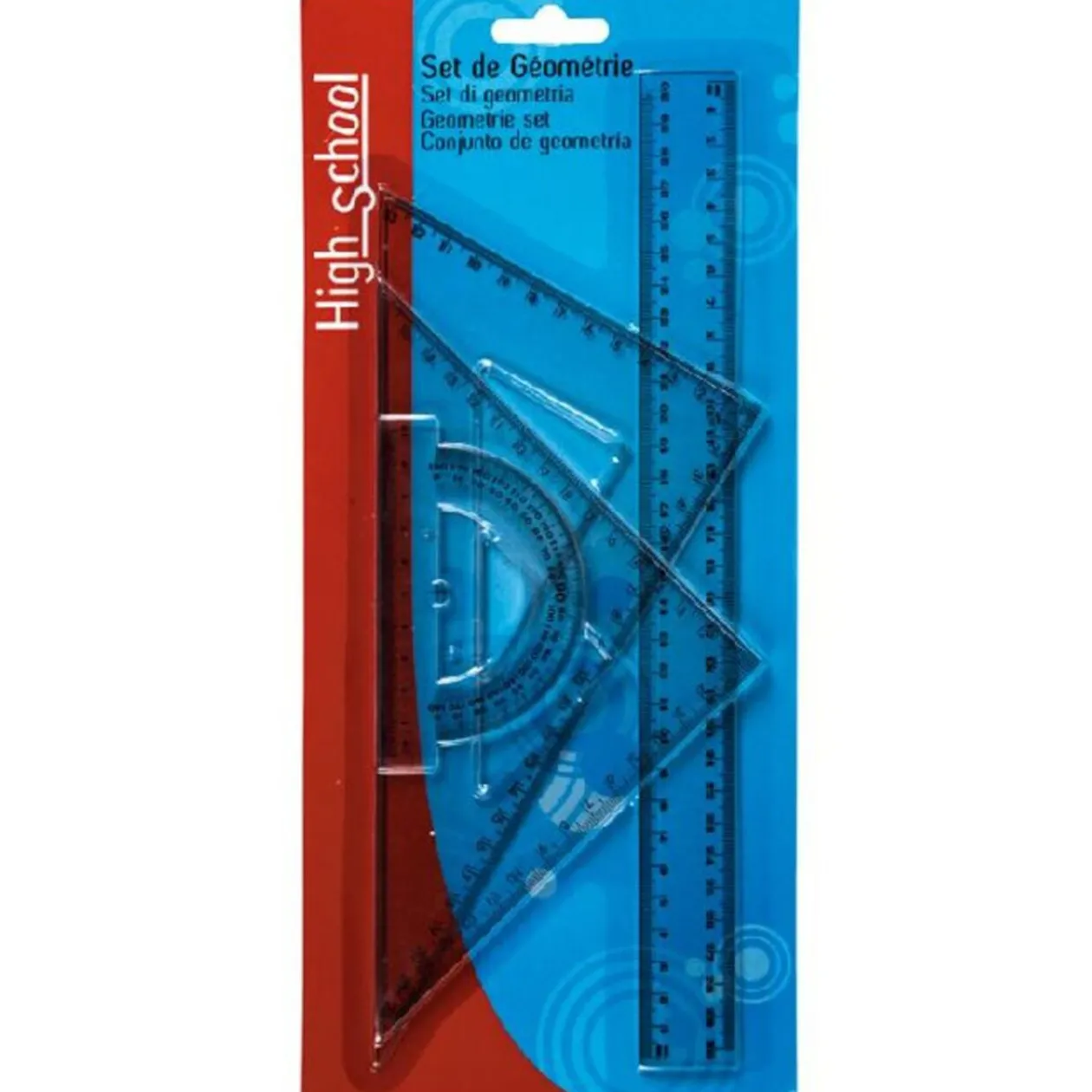 Kit de traçage, comprenant 1 règle de 30 cm, 2 équerres et 1 rapporteur en plastique.