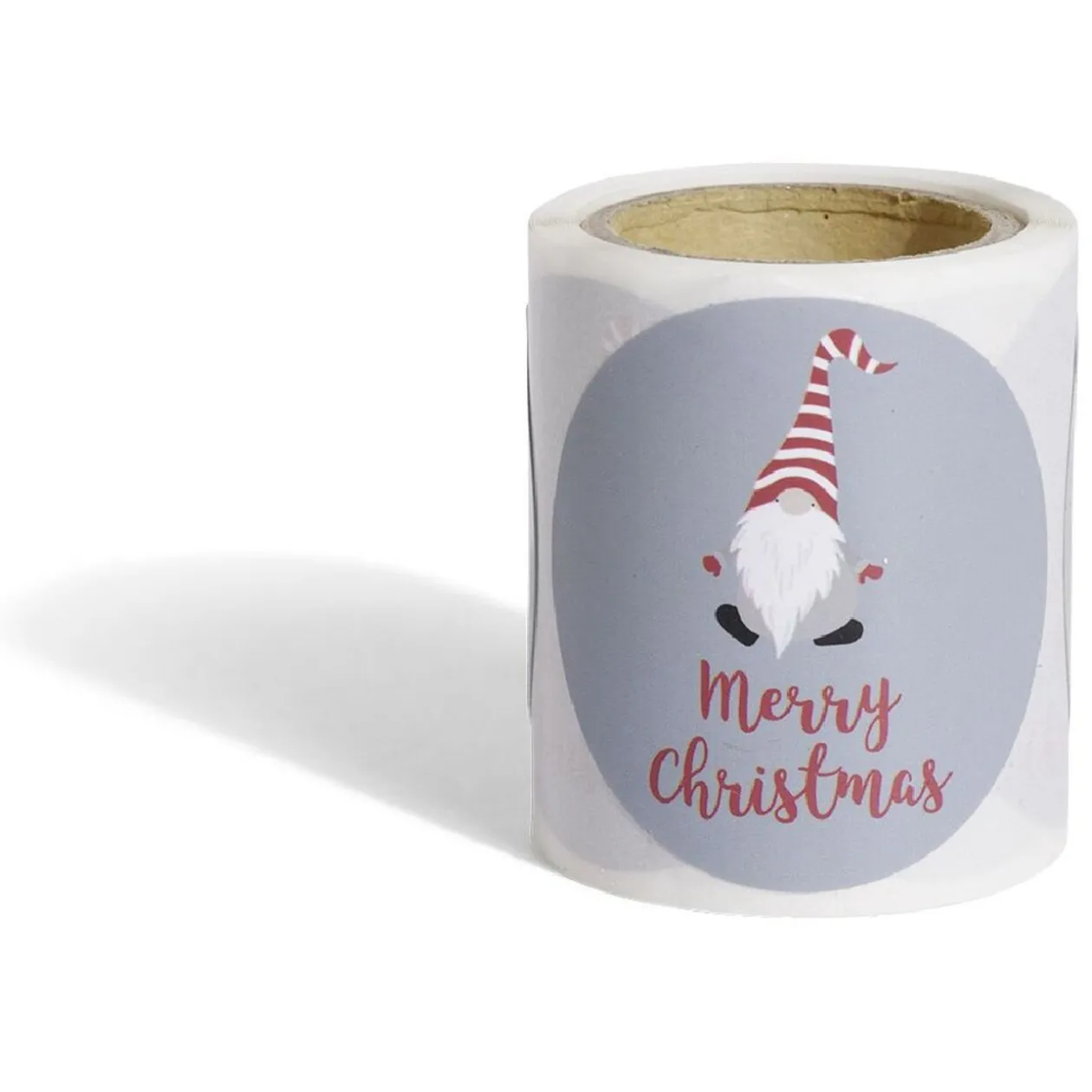 Ce rouleau de 50 étiquettes autocollantes à motif gnome Père Noël est idéal pour personnaliser vos paquets cadeaux.