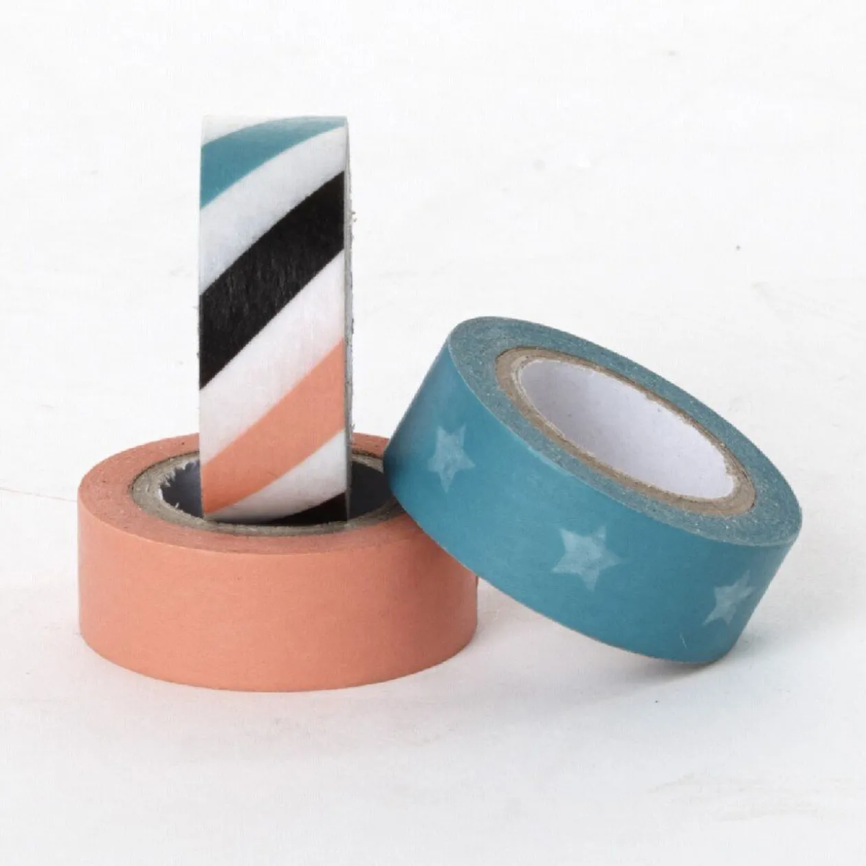 Lot de 3 rouleaux adhésifs à motifs.Dimension : 3 x Ø3,5 cm.