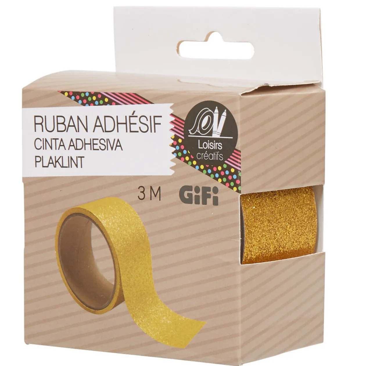 Ruban adhésif de couleur dorée, idéal pour vos loisirs créatifs et pour votre décoration de Noël.