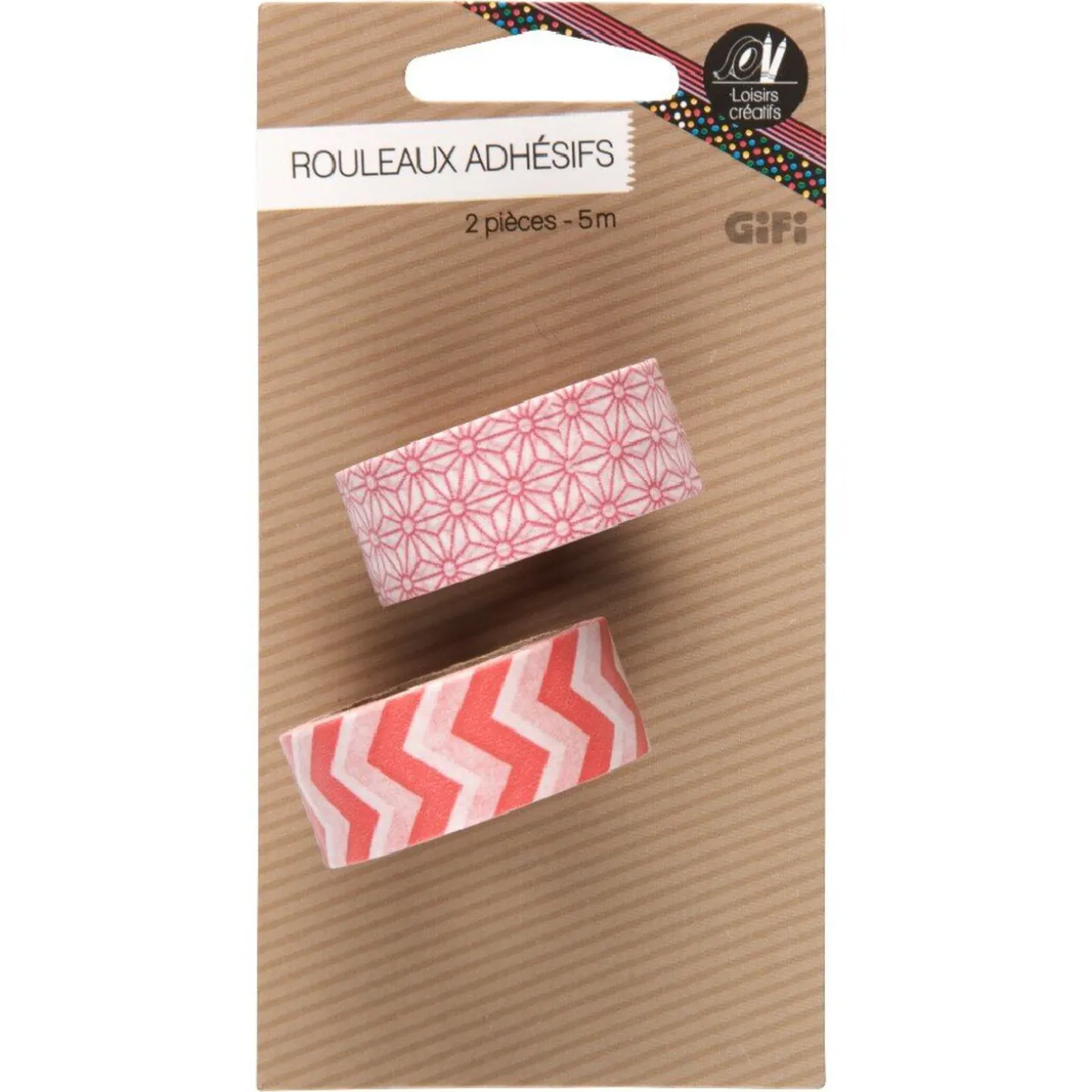 Lot de 2 rouleaux de ruban adhésif à motifs rose.