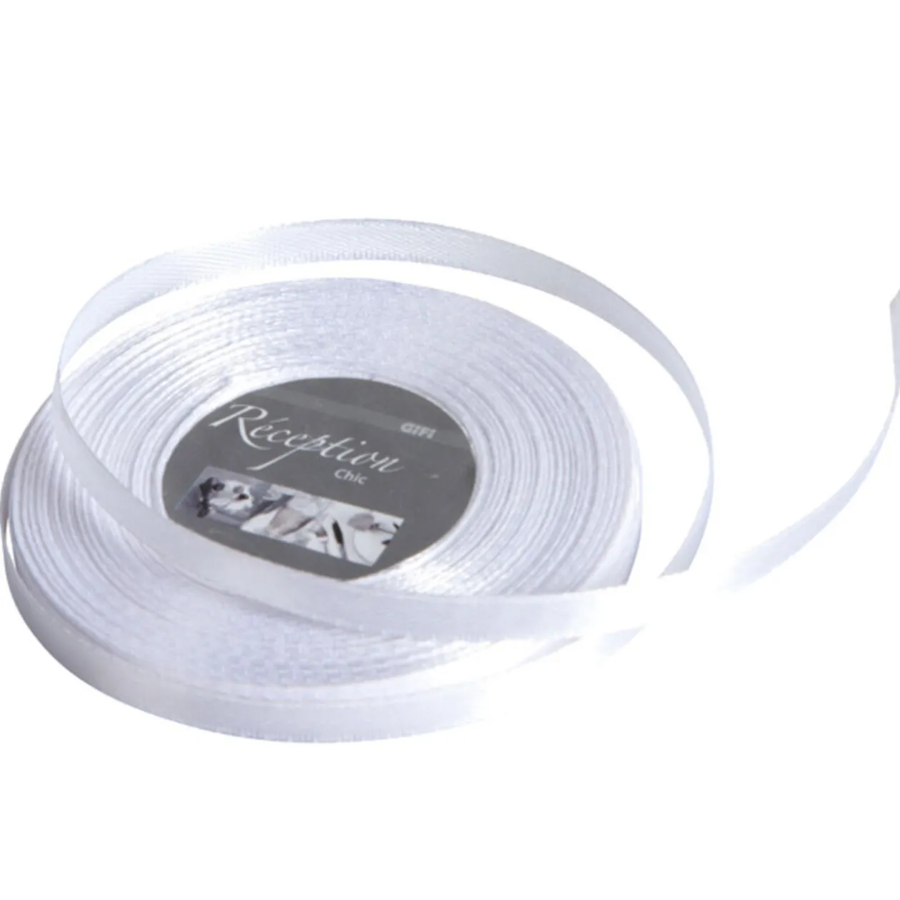 Ruban satin 25 m, largeur 6 mm, couleur blanc.