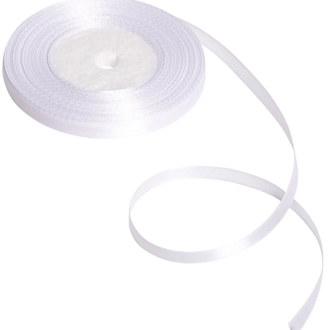 Ruban satin blanc en polyester, longueur 25 m, largeur 0,6 cm. Peut s’utiliser en décoration pour mariage ou autre évènement.