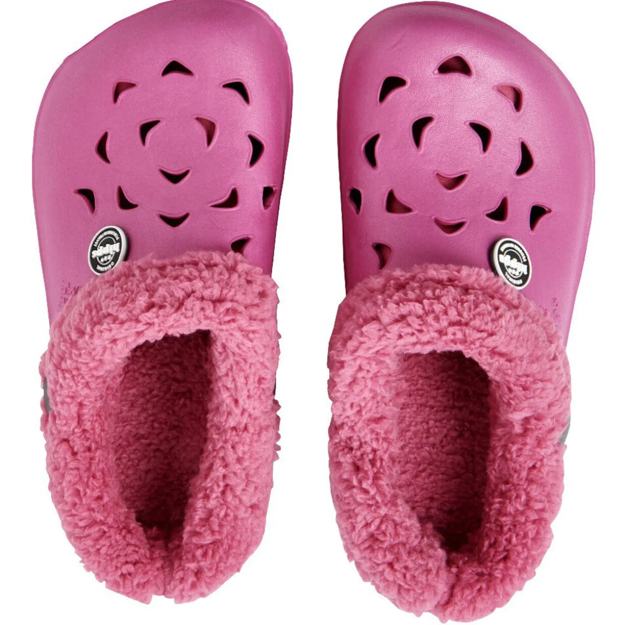 Paire de sabots Hipps pour enfant en plastique fourré de couleur uni rose.