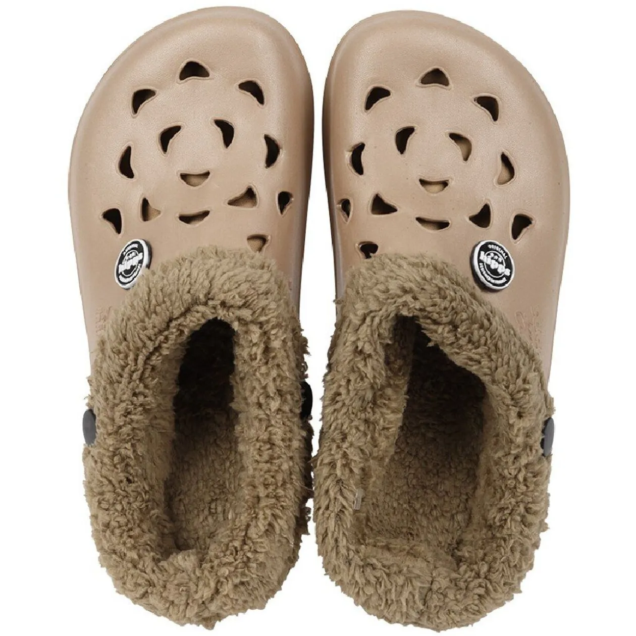 Paire de sabots Hipps pour femme en plastique fourré de couleur uni taupe.