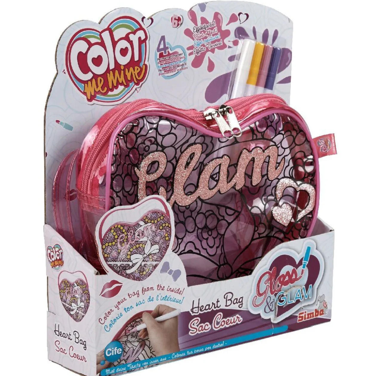 Colorie ton sac de l’intérieur ! Ce sac rose Glam en forme de coeur, est à customiser en coloriant l’intérieur grâce aux 4 feutres permanents inclus de couleur blanc, jaune, rose et bleu.