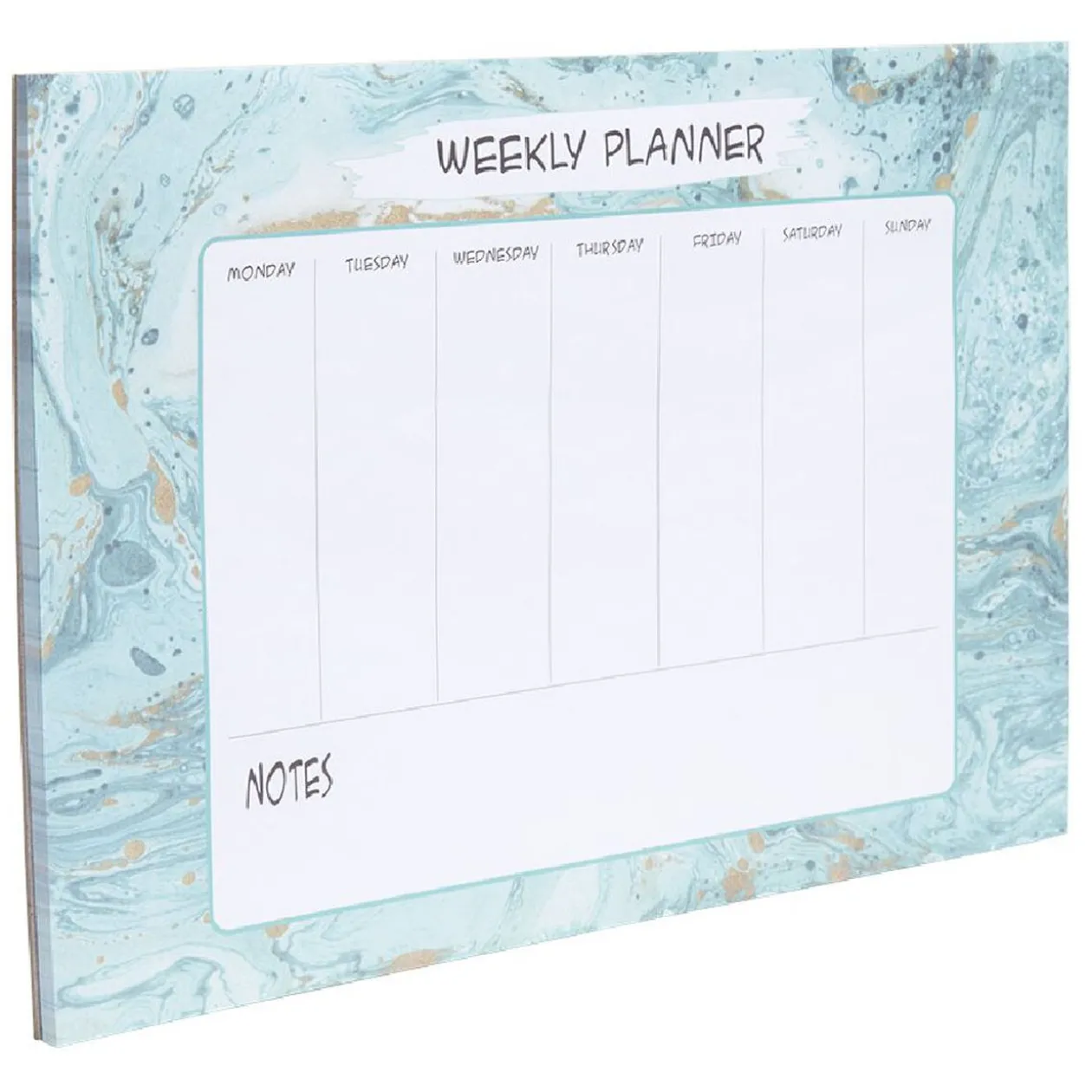 Plannifiez votre semaine et vos rendez vous grâce au semainier à motif bleu de 50 pages.
