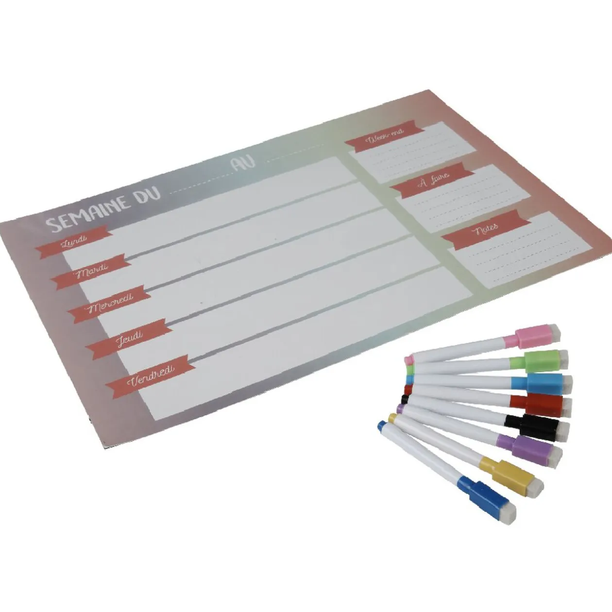 Ce semainier magnétique déco est livré avec 4 feutres effaçables noirs pour égayer chaque jour de la semaine.