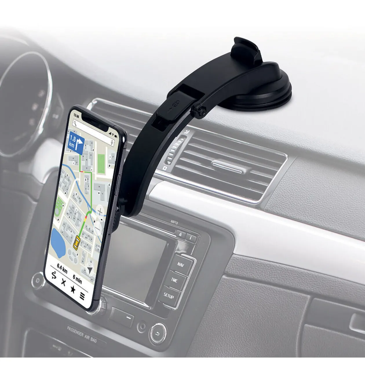 Le support se fixe à la voiture à l’aide d’une ventouse.