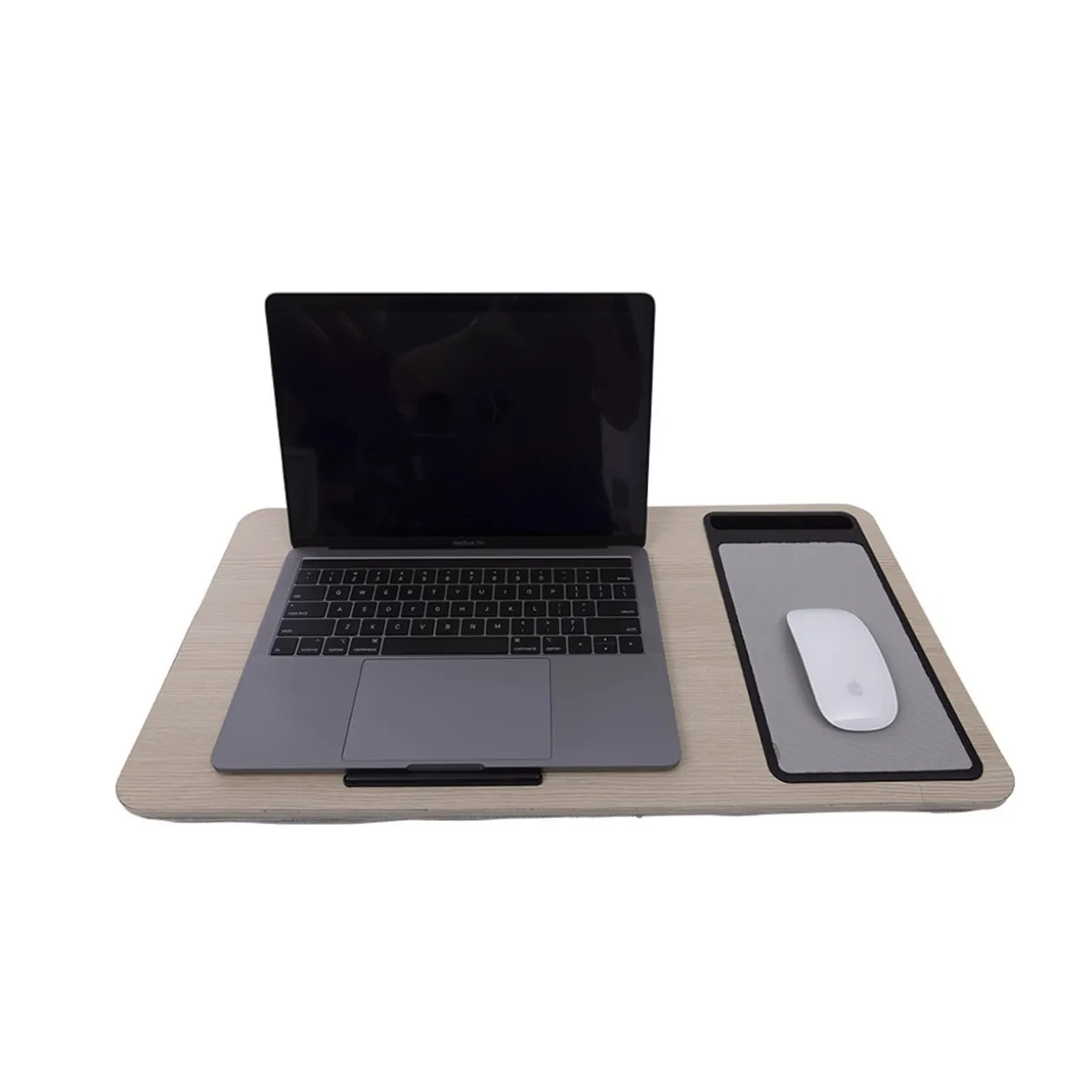 Support pour tablette et ordinateur portable avec double coussin rembourrépour un confort optimal et une meilleure stabilité. Pratique avec sa poignée et son tapis de souris intégré.