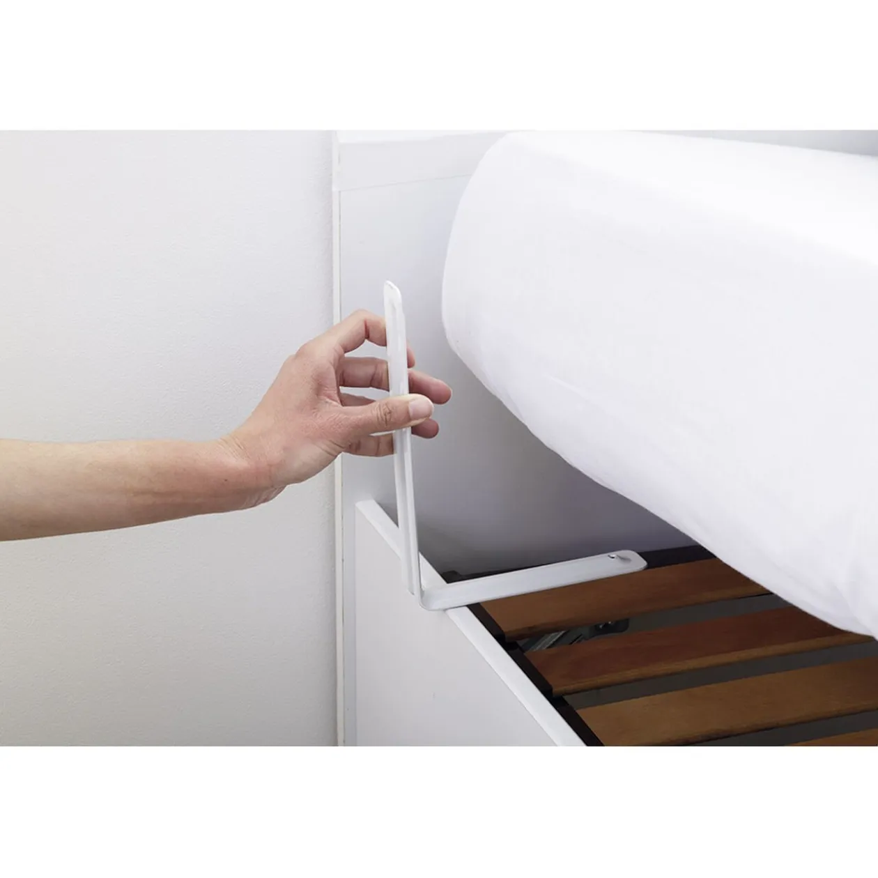 Idéal pour les petits espaces, ce support pour tablette sur 2 positions vous permettra de l’emporter jusque dans votre lit. Avec son installation facile, il vous suffit simplement de glisser ses deux barres sur le côté de votre lit puis de les caler sous votre matelas, votre support ne bougera pas et vous pourrez regarder vos programmes favoris tout en ayant les mains libres. Muni d’un organisateur de câbles vous ne serez pas encombré par ces derniers.