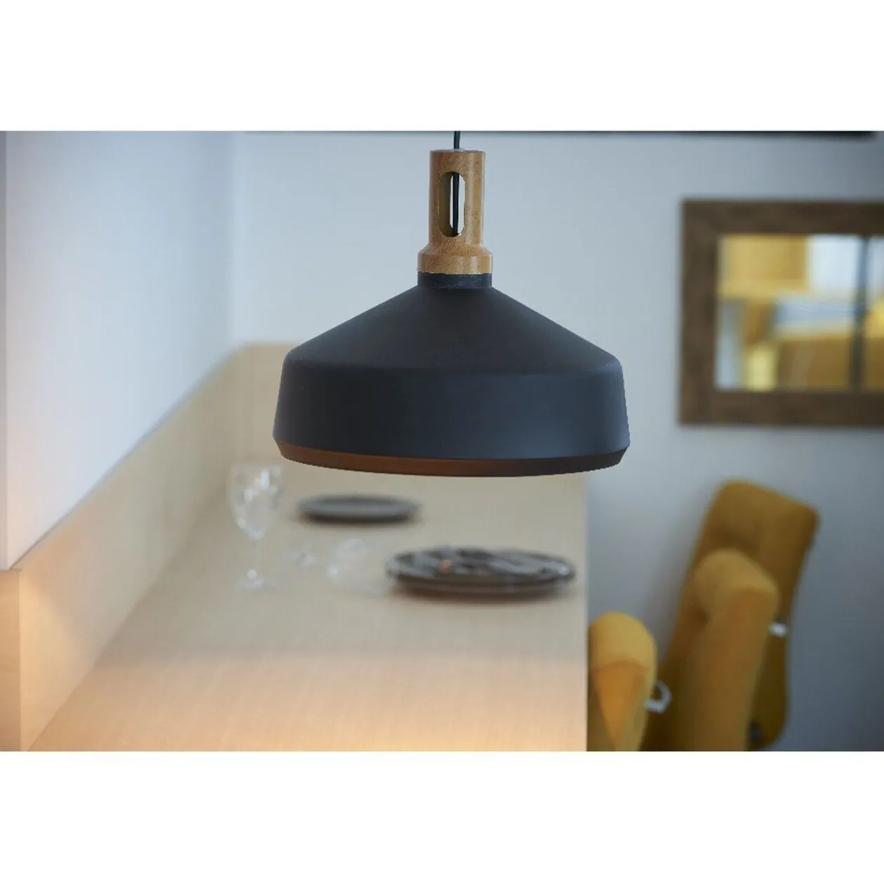 Suspension métal noire, dim. Ø 32,5×30 cm, intérieur couleur bronze..