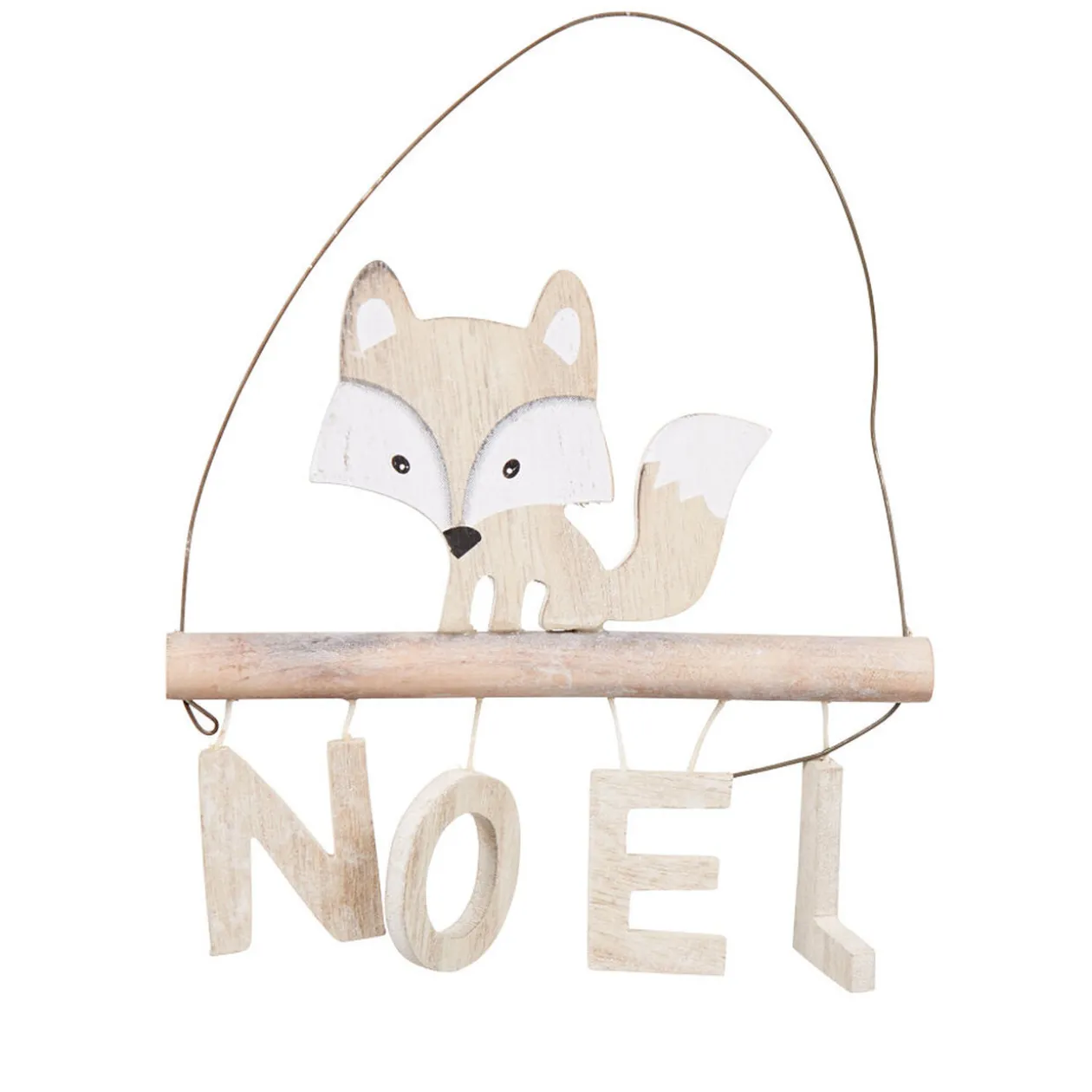 Donnez un esprit scandinave à votre décoration de Noël avec cette suspension renard beige avec lettres NOEL en bois naturel assorti.