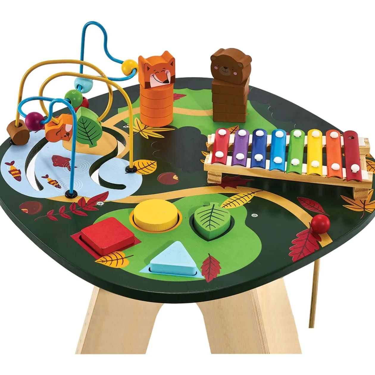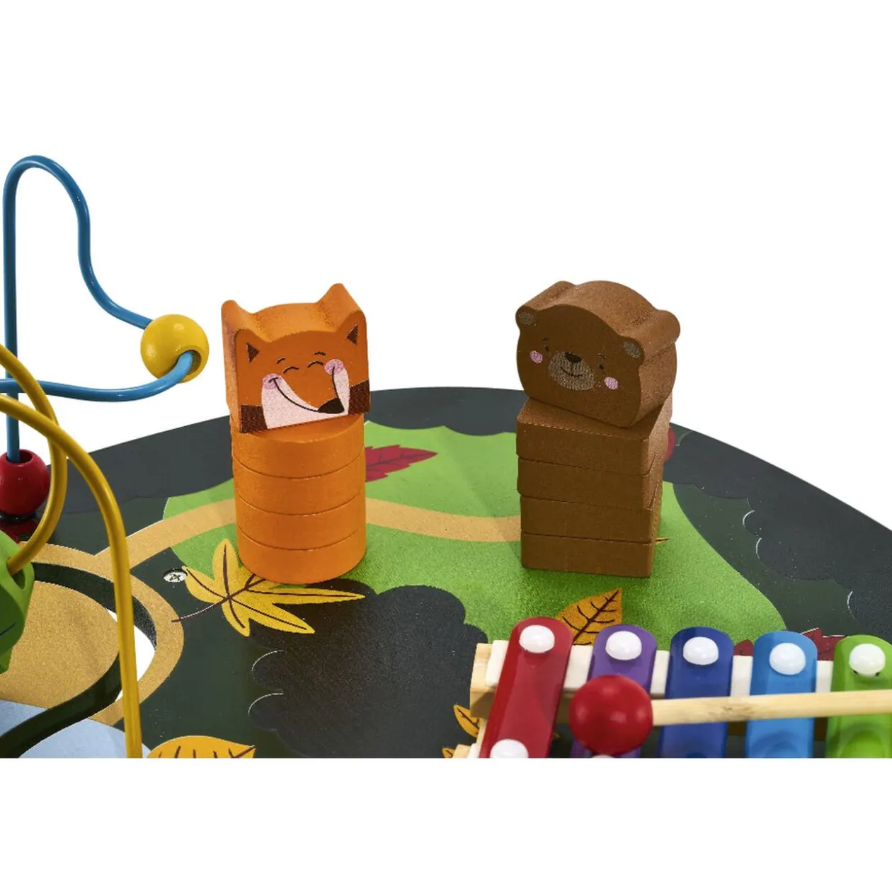 Stable et robuste, la table propose diverses activités faisant travailler la logique et la dextérité de votre bambin tout en s’amusant :