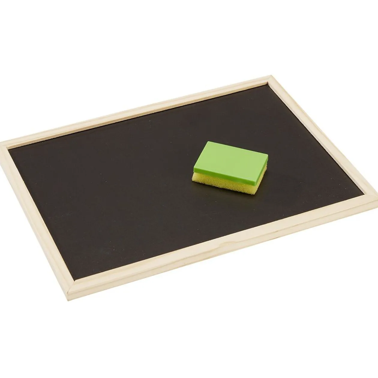 Tableau ardoise format A4 avec 2 jeux de craies blanches et 1 éponge double face.