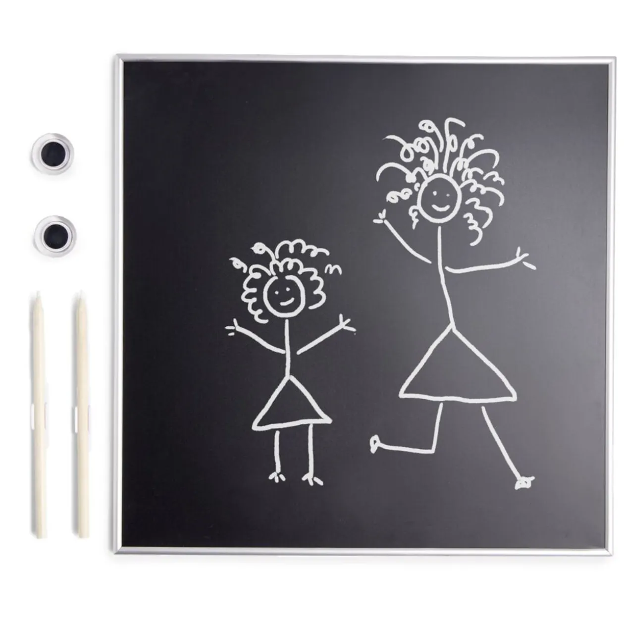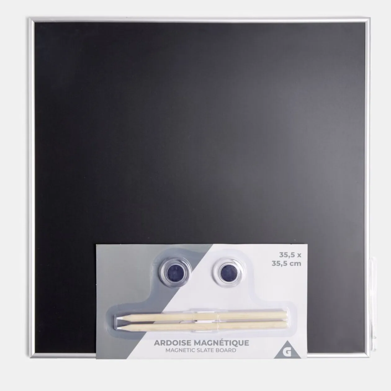 Tableau ardoise magnétique avec accessoires inclus.