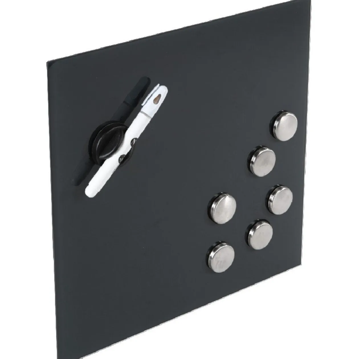 Tableau mémo aimanté, dim. 35×35 cm, métal. 6 magnets et 1 stylo inclus. Diff. modèles, disponibilité selon arrivage.