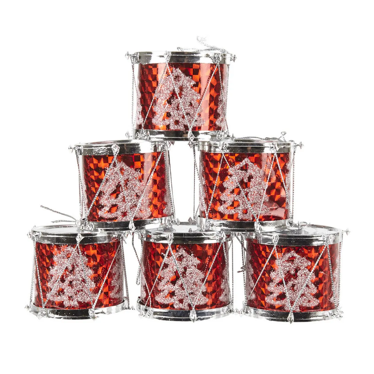 Tambour à suspendre Noël rouge X6, plastique. Dim : Ø 5 cm.